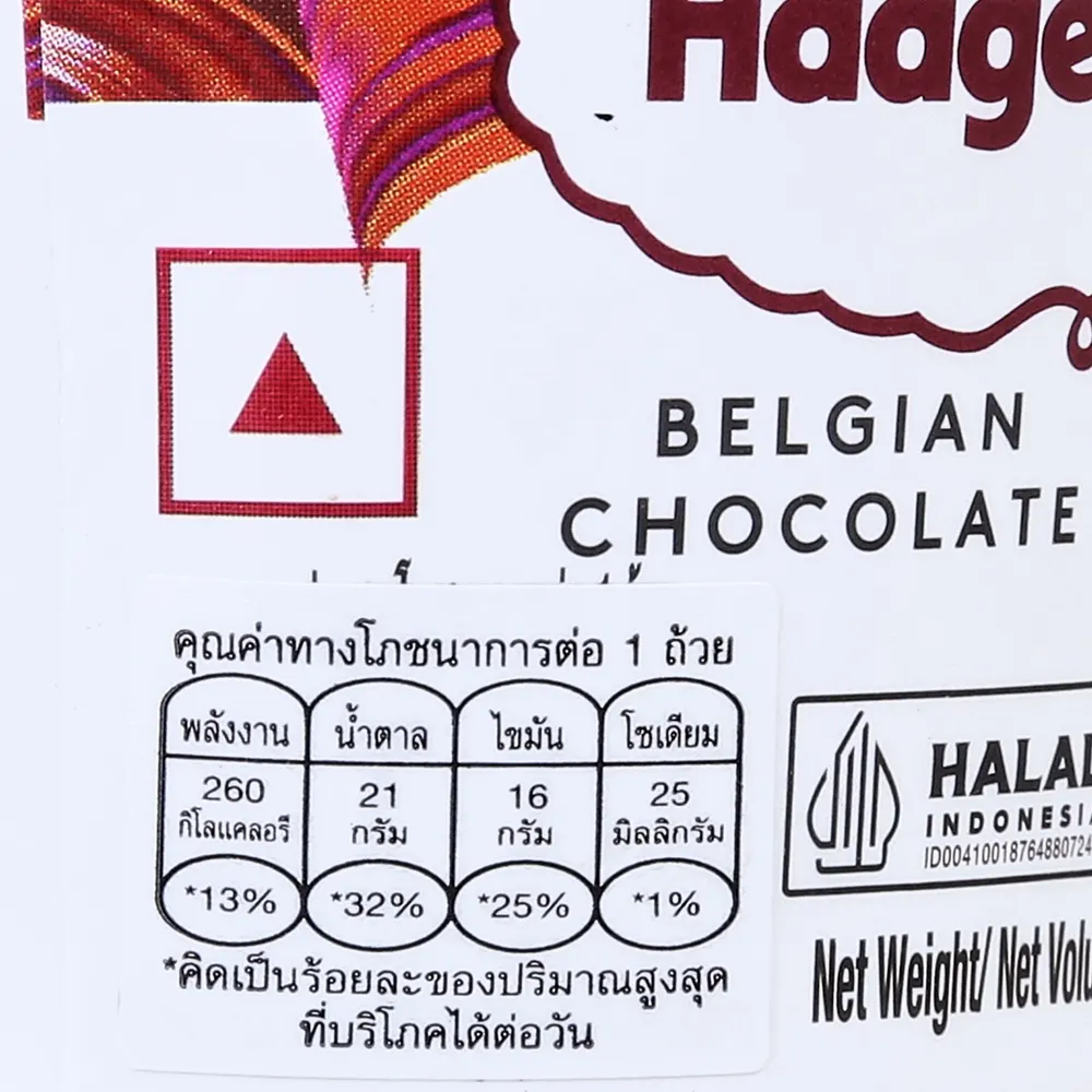 ฮาเก้นดาส ไอศกรีม รสเบลเยี่ยมช็อกโกแลตระดับพรีเมียมเนื้อแน่น หอมละมุน ผลิตจากครีมและนมชั้นดี พร้อมรสสัมผัสของช็อคโกแลตเข้มข้น โดยเลือกช็อคโกแลตเข้มข้นจากเบลเยี่ยมเป็นเกล็ดเล็กๆผสมเข้าไปในเนื้อไอศครีมจึงได้รสชาติเข้มข้นไม่เหมือนใคร<br />