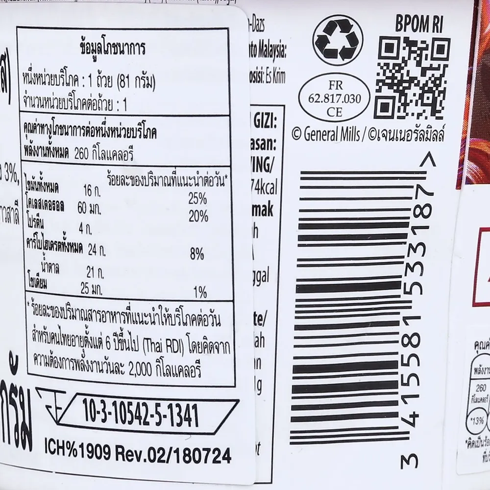 ฮาเก้นดาส ไอศกรีม เบลเยี่ยม ช็อคโกแลต มินิคัพ 81 ก.
