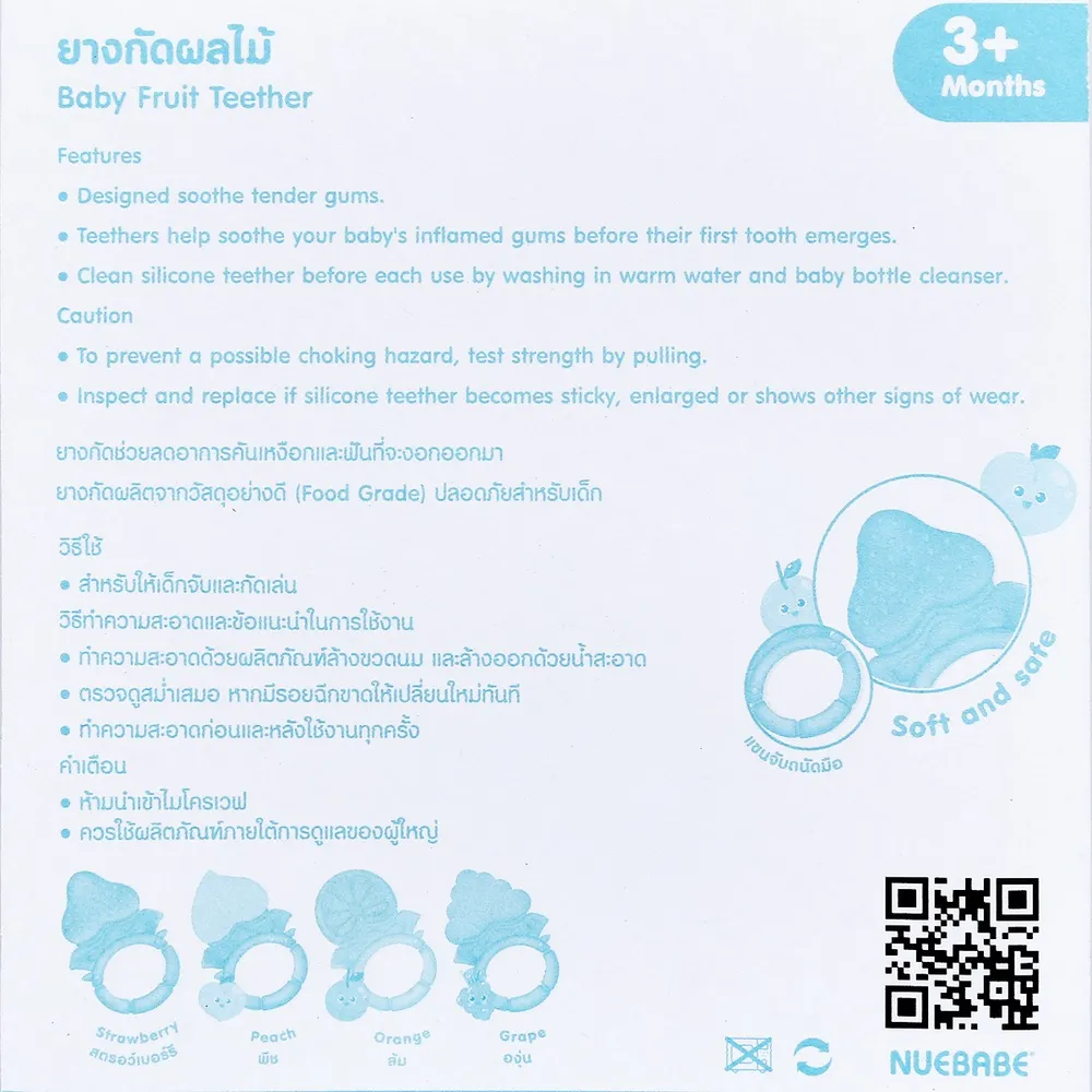 นูเบบ ยางกัดซิลิโคนรูปผลไม้ สัมผัสนุ่มและปลอดภัยด้วยมาตรฐาน มอก. BPA Free ผลิตจากวัสดุคุณภาพสูง นุ่ม ยืดหยุ่นง่าย ทนทาน ลดการสะสมของแบคทีเรียและเชื้อรา<br />