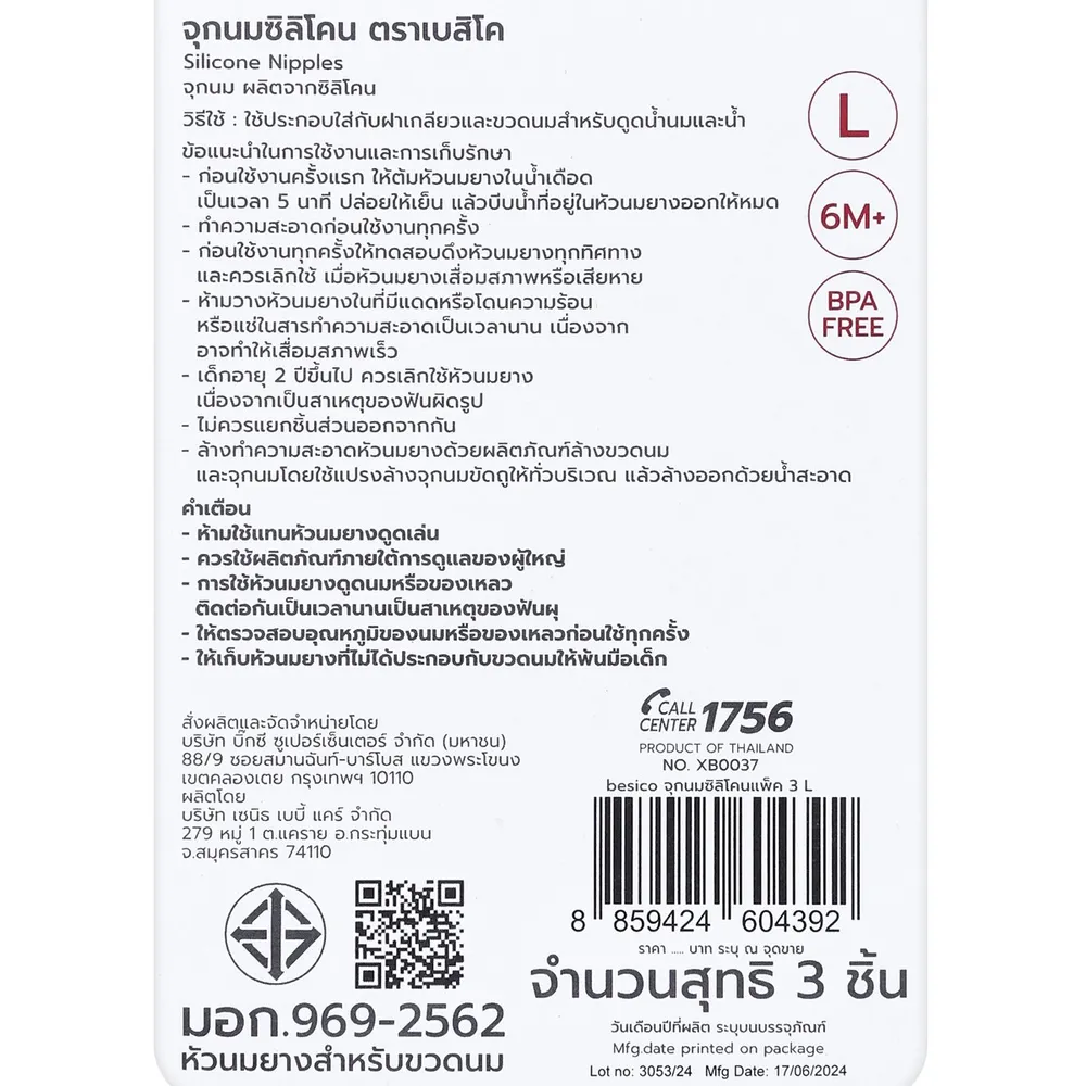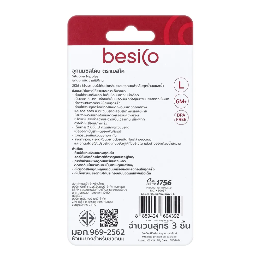 เบสิโค จุกนมซิลิโคน ขนาด L แพ็ค 3 ชิ้น