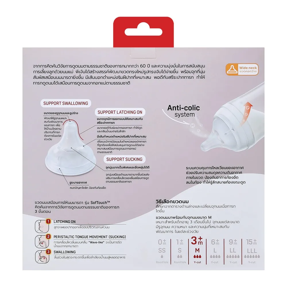 พีเจ้น ขวดนมคอกว้าง ขนาด 240 มล. พร้อมจุกนม Y-Cut ขนาด M แพ็คคู่