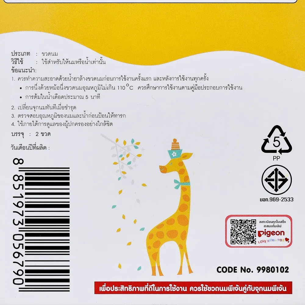 พีเจ้น ขวดนม RPP ลายยีราฟ ขนาด 8 ออนซ์ แพ็ค 2