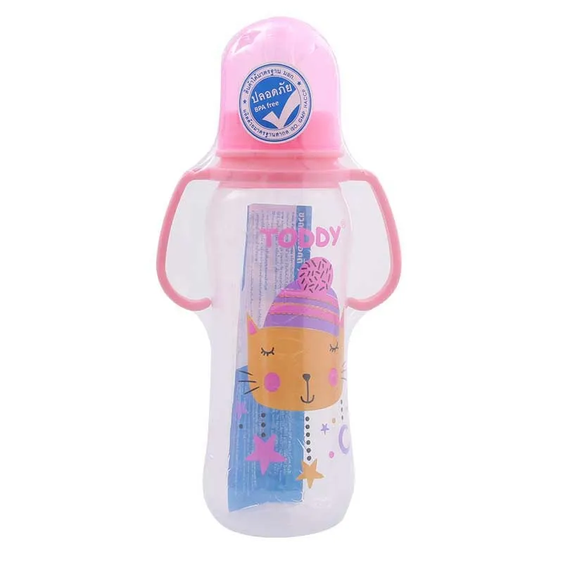 ให้ลูกรักดื่มนมได้สะดวกสบาย ด้วยขวดนมมีที่จับ ขนาด 8 ออนซ์ คละสี จากทอดดี้ ผลิตจากพลาสติกโพลิโพรพิลีนคุณภาพ ระดับมาตรฐานสากล ปราศจากสารปนเปื้อน ออกแบบขวดมาพร้อมที่จับถนัดมือ ให้ลูกน้อยถือดื่มเองได้สะดวก เหมาะสำหรับบรรจุน้ำและนมพร้อมดื่ม<br />