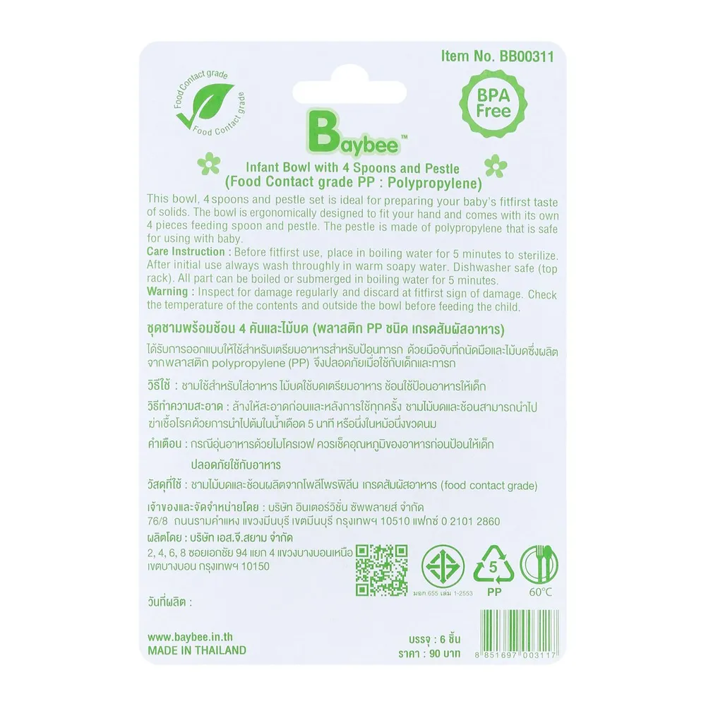 เบย์บี ชุดชามบดอาหาร พร้อมช้อนและไม้บด