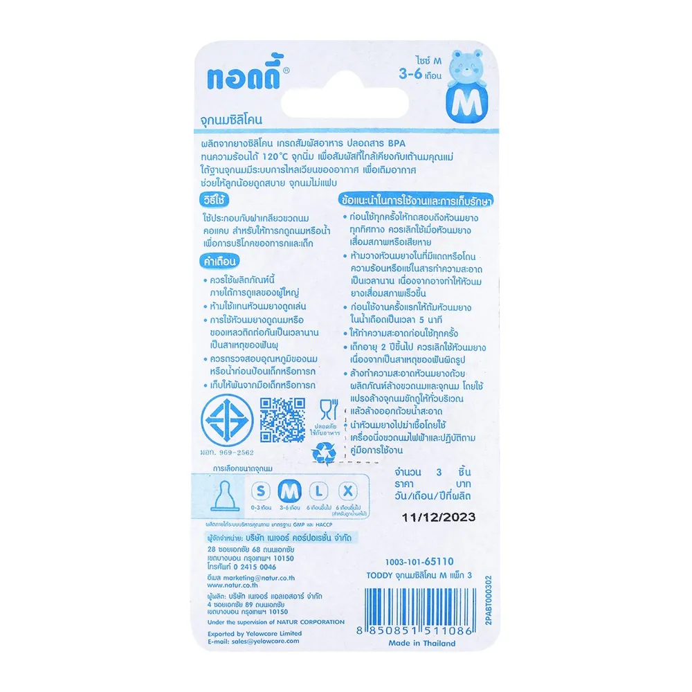 <p>ทอดดี้ จุกนมซิลิโคน รุ่น N-3TM ขนาด M แพ็ค 3 ชิ้น<br />