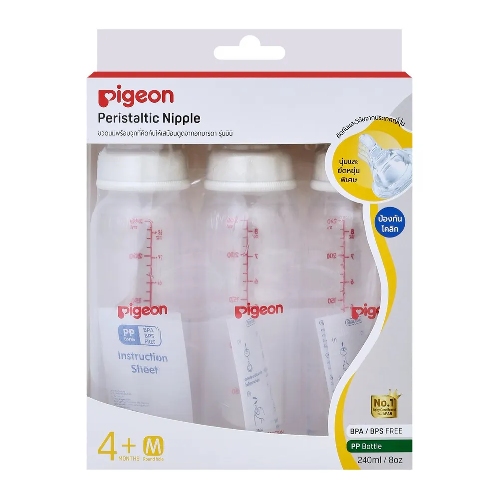<p>พีเจ้น ขวดนม พร้อมจุกนมเพอร์ริสทัลทิค ขนาด M ขนาด 8 ออนซ์ แพ็ค 3<br />