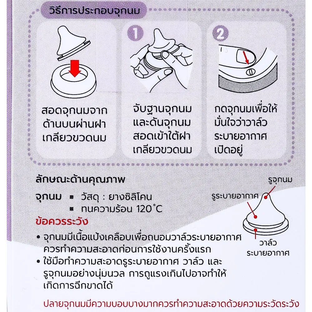 - ตัวของจุกนมมีรูระบายอากาศ และวาล์วระบายอากาศ<br />