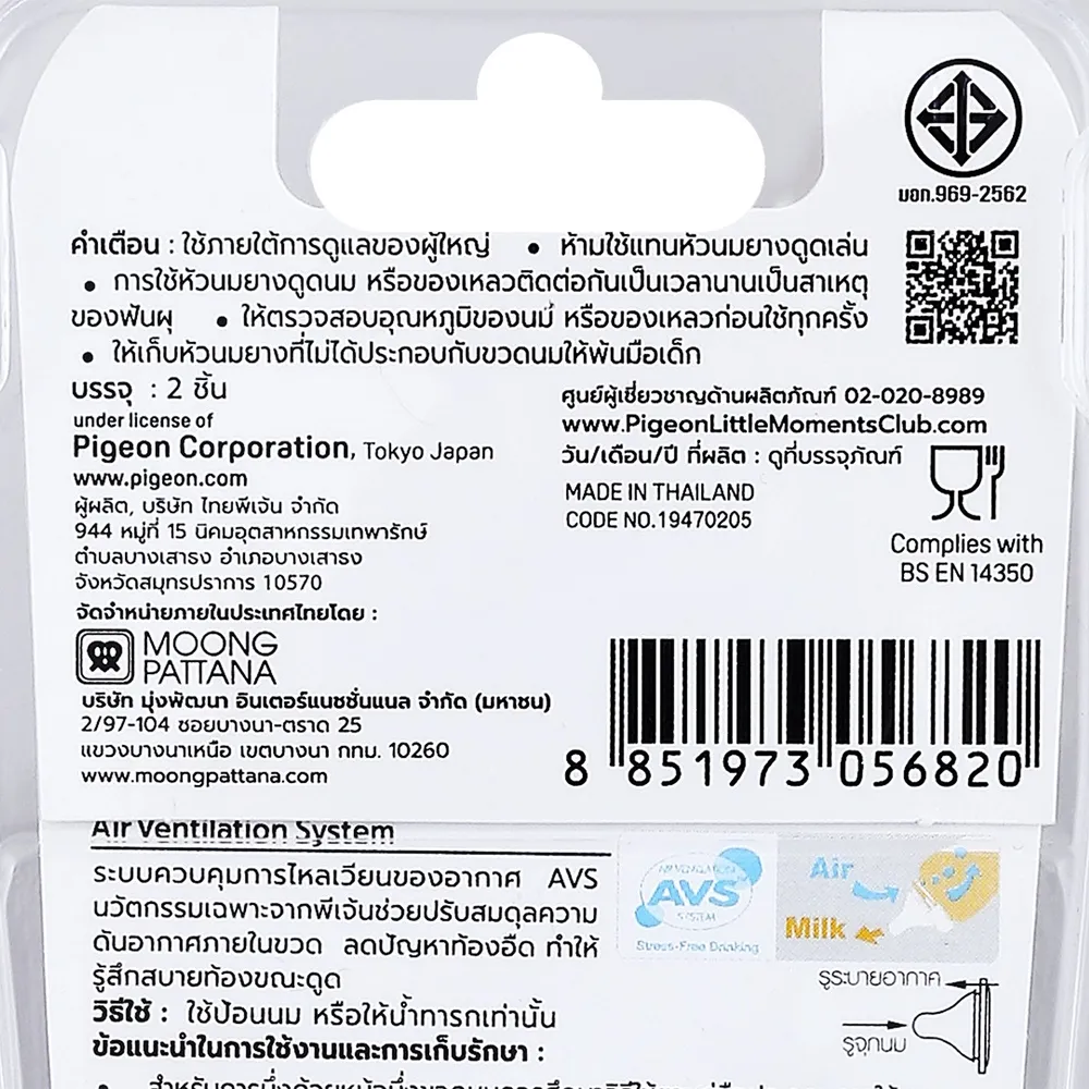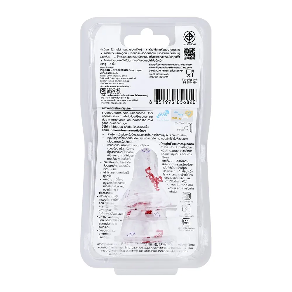 - Air Ventilation System (AVS TM) เป็นลิขสิทธิ์เฉพาะพีเจ้น AVS คือระบบการควบคุมการไหลเวียนของอากาศ มีคุณสมบัติในการช่วยปรับความดันของอากาศภายในขวดและยังช่วยลดไม่ให้อากาศเข้าในขวดขณะทารกดูดนม<br />