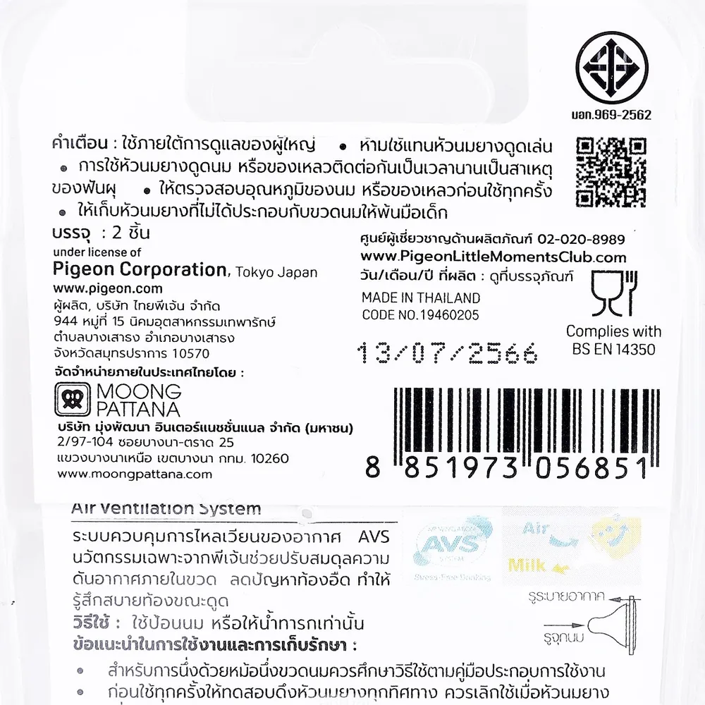 - Air Ventilation System (AVS TM) เป็นลิขสิทธิ์เฉพาะพีเจ้น AVS คือระบบการควบคุมการไหลเวียนของอากาศ มีคุณสมบัติในการช่วยปรับความดันของอากาศภายในขวดและยังช่วยลดไม่ให้อากาศเข้าในขวดขณะทารกดูดนม<br />