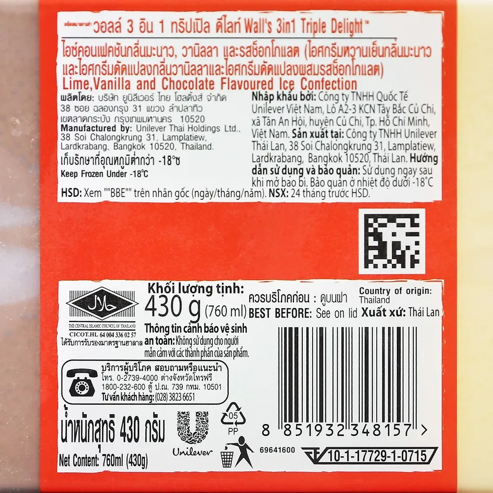 วอลล์ 3อิน1 ทริปเปิ้ลดีไลท์ใหม่ 470 ก.