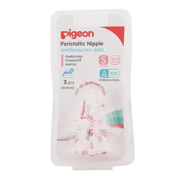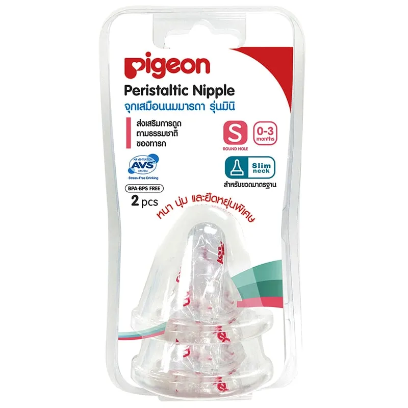 <p>พีเจ้น จุกเสมือนนมมารดา รุ่นมินิ ไซส์ S แพ็ค 2<br /><br />ให้ลูกรักของคุณมีความรู้สึกว่าได้ดูดนมจากมารดาโดยตรง ด้วยจุกนม Pigeon Mini จุกนมที่ให้เด็กสามารถดูดนมได้ง่าย พร้อมให้พวกเค้าเกิดความรู้สึกอันอบอุ่น เสมือนว่าดูดนมจากอกคุณแม่<br /><br /> - สำหรับทารกอายุ 0-3 เดือน<br /> - จุกนมสามารถยืดหยุ่นได้เป็นพิเศษ เพื่อให้พอดีกับช่องเพดานปากของทารกในขณะดูดนม<br /> - ผลิตจากซิลิคอนคุณภาพสูง อ่อนนุ่มพิเศษและหนาถึง 2 เท่าของจุกนมธรรมดา<br />- สำหรับใช้กับขวดนมขนาดมาตรฐาน<br /> - Air Ventilation System (AVS TM) เป็นลิขสิทธิ์เฉพาะพีเจ้น AVS คือระบบการควบคุมการไหลเวียนของอากาศ มีคุณสมบัติในการช่วยปรับความดันของอากาศภายในขวดและยังช่วยลดไม่ให้อากาศเข้าในขวดขณะทารกดูดนม<br /> - ส่งเสริมการดูดตามธรรมชาติของทารกใช้สลับกับการให้นมจากอกมารดาได้<br /><br />