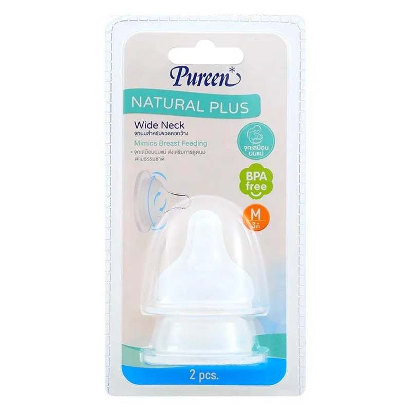เพียวรีน จุกนมเนเชอรัล พลัส ทรงฐานกว้าง ไซส์ M แพ็ก 2