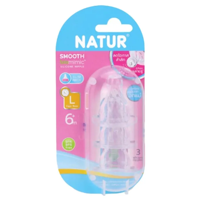 <p>เนเจอร์ จุกนม รุ่นสมูทไบโอมิมิค ขนาด L แพ็ค 3<br /><br />เนเจอร์ จุกนม รุ่นสมูทไบโอมิมิค จุกนมคุณภาพเยี่ยมจากแบรนด์ เนเจอร์ ที่ผลิตจากวัสดุคุณภาพดี ปลอดภัยกับเด็ก จุกนมพร้อมระบบวาล์วที่ควบคุมการไหวเวียนของอากาศ เด็กดูดง่าย จุกไม่แฟบ<br /><br />- เนเจอร์ จุกนม รุ่นสมูทไบโอมิมิค ขนาด L <br />- ผลิตจากซิลิโคนคุณภาพสูง นิ่ม ใส ไร้กลิ่น<br />- จุกนมมี 8 รู พร้อมระบบวาล์วควบคุมการไหลเวียนของอากาศแบบ 3 ทิศทาง ช่วยให้เด็กดูดง่าย จุกไม่แฟบ<br />- สลับเต้าง่าย ลูกไม่สับสน พร้อมช่วยลดโอกาสสำลัก<br />- ปลอดสาร BPA และ BPS <br />- สำหรับเด็กอายุ 6+ เดือน<br />- ทำความสะอาดโดยใช้น้ำยาล้างขวดนม<br /><br />