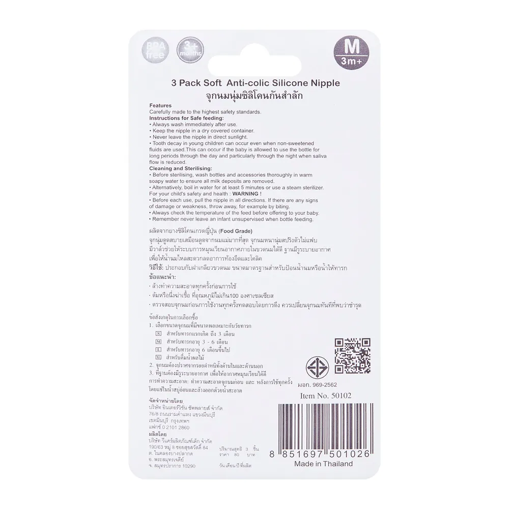 - มาพร้อมระบบ Anti-colic เพื่อป้องกันอากาศเข้าระหว่างดูดนม ลดปัญหาอาการโคลิค แก๊สในกระเพาะ และกรดไหลย้อน<br />