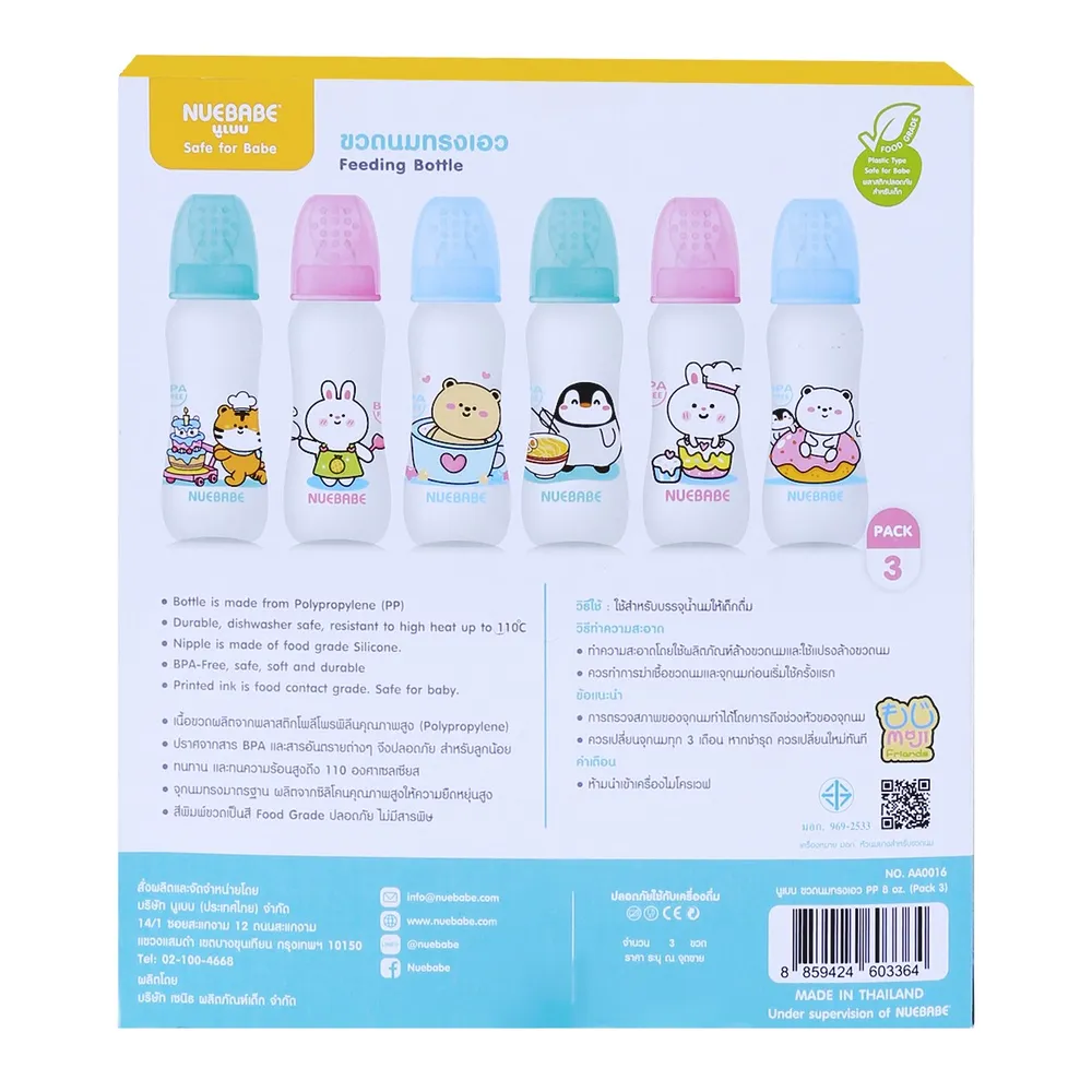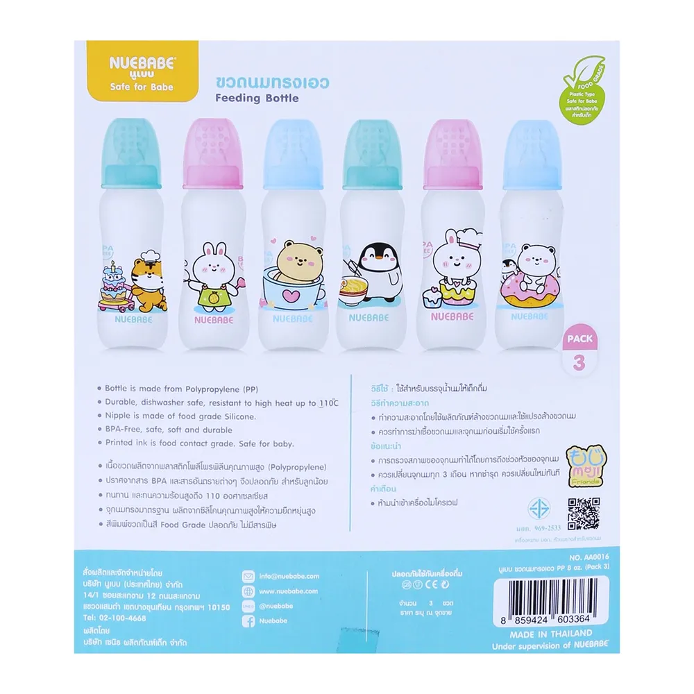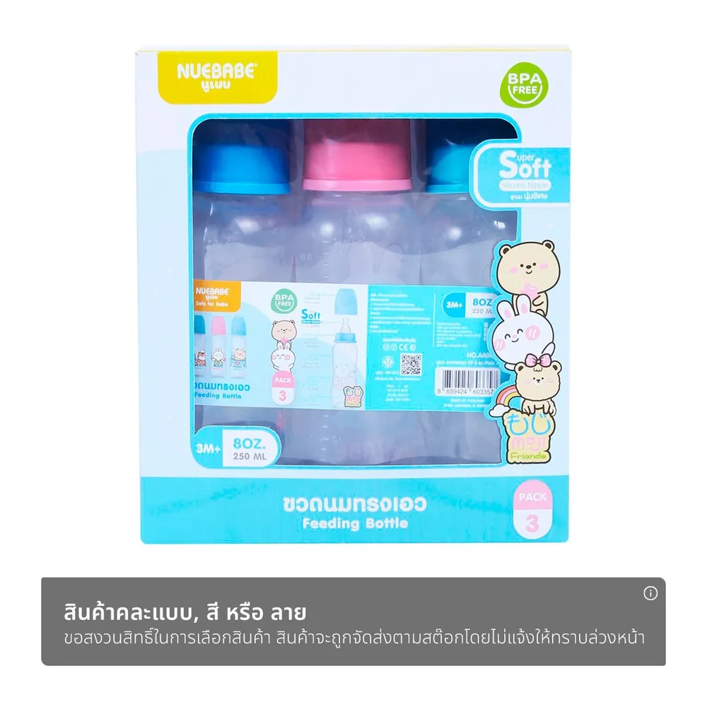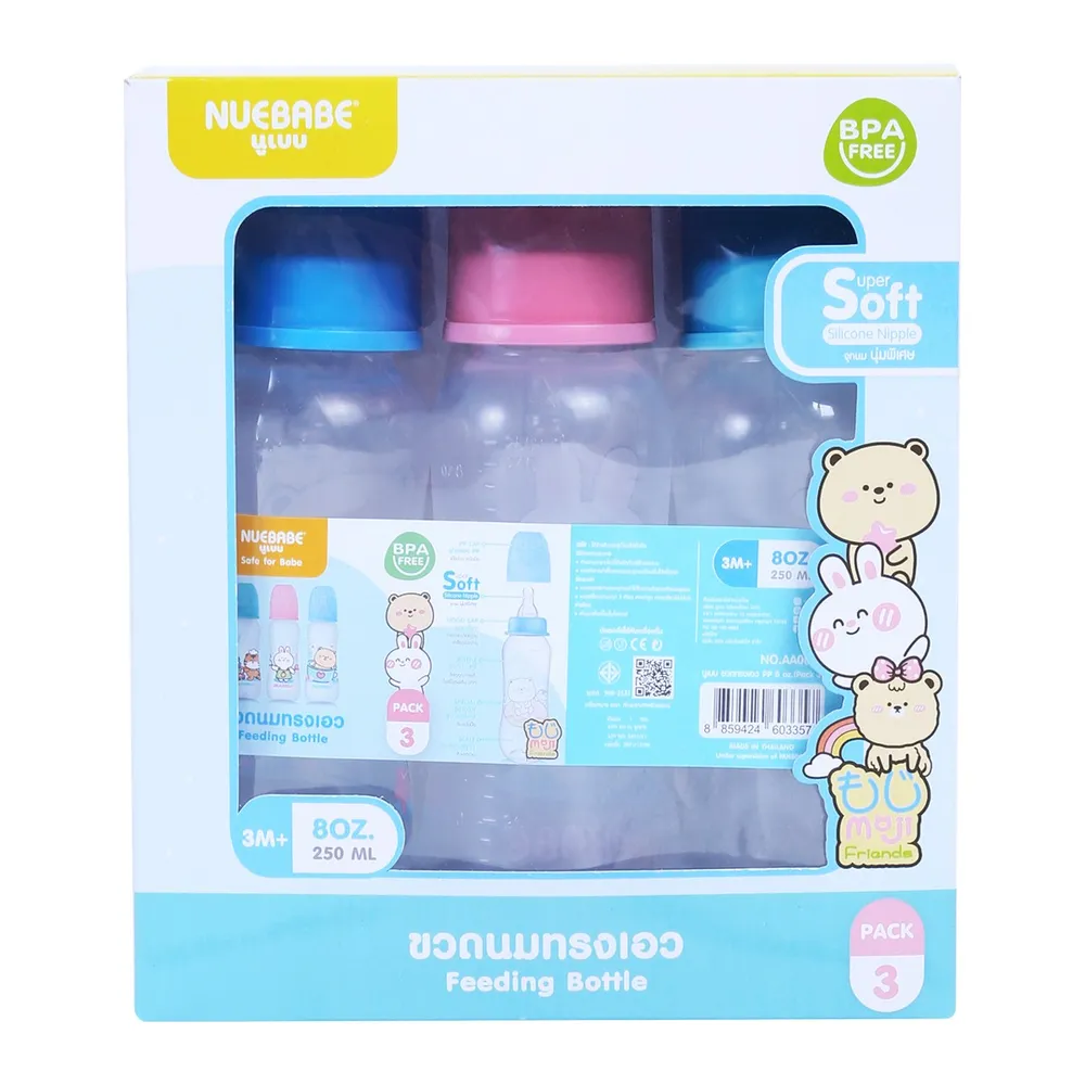 นูเบบ ขวดนมทรงเอว รุ่น AA0016-B ขนาด 8 ออนซ์ แพ็ค 3 (สินค้าคละลาย ไม่สามารถเลือกได้)
