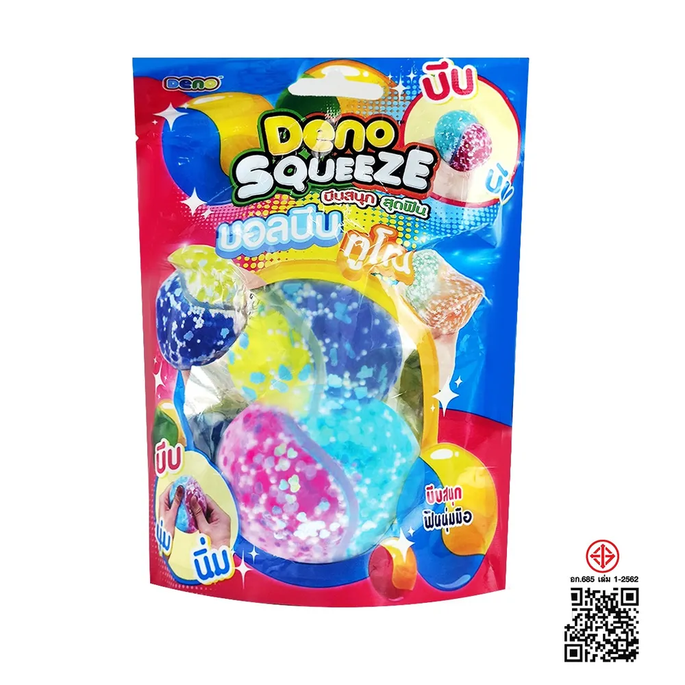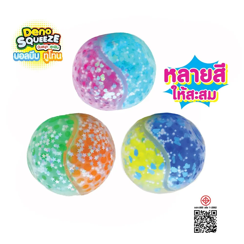 วี.อาร์.ทอยส์ ดีโน่บอลเด้งดึ๋งคละแบบ สไลม์บอลบีบ สินค้าคุณภาพดี สีสันสดใส สามารถฝึกทักษะการเคลื่อนไหวของนิ้ว กล้ามเนื้อมือ จินตนาการ และความคิดสร้างสรรค์ เมื่อบีบที่ลูกบอล ลูกบอลจะเปลี่ยนสี โดยเด็ก ๆ<br />