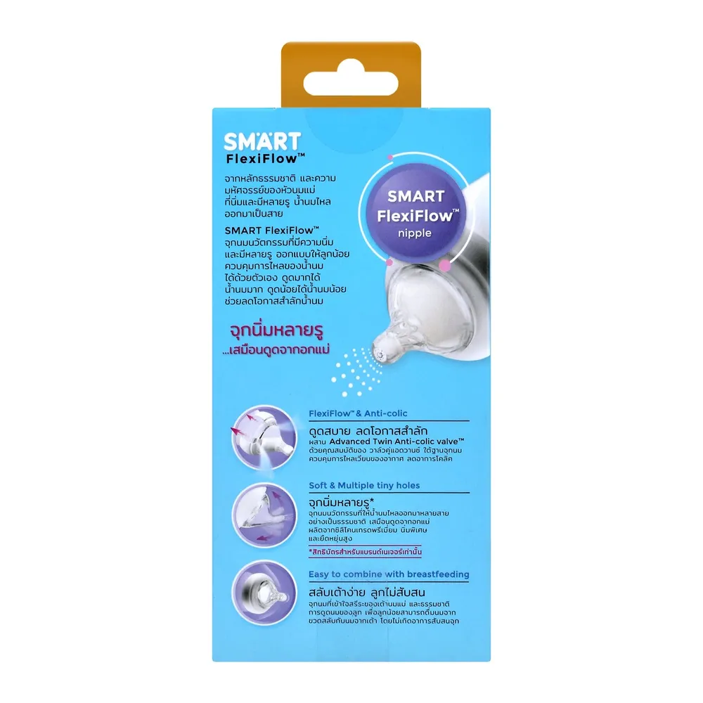 - ดูดสบาย ลดโอกาสสำลัก ผสานวาล์วคู่แอดวานซ์ใต้ฐานจุกนม ควบคุมการไหลเวียนของอากาศ ลดอาการโคลิค<br />