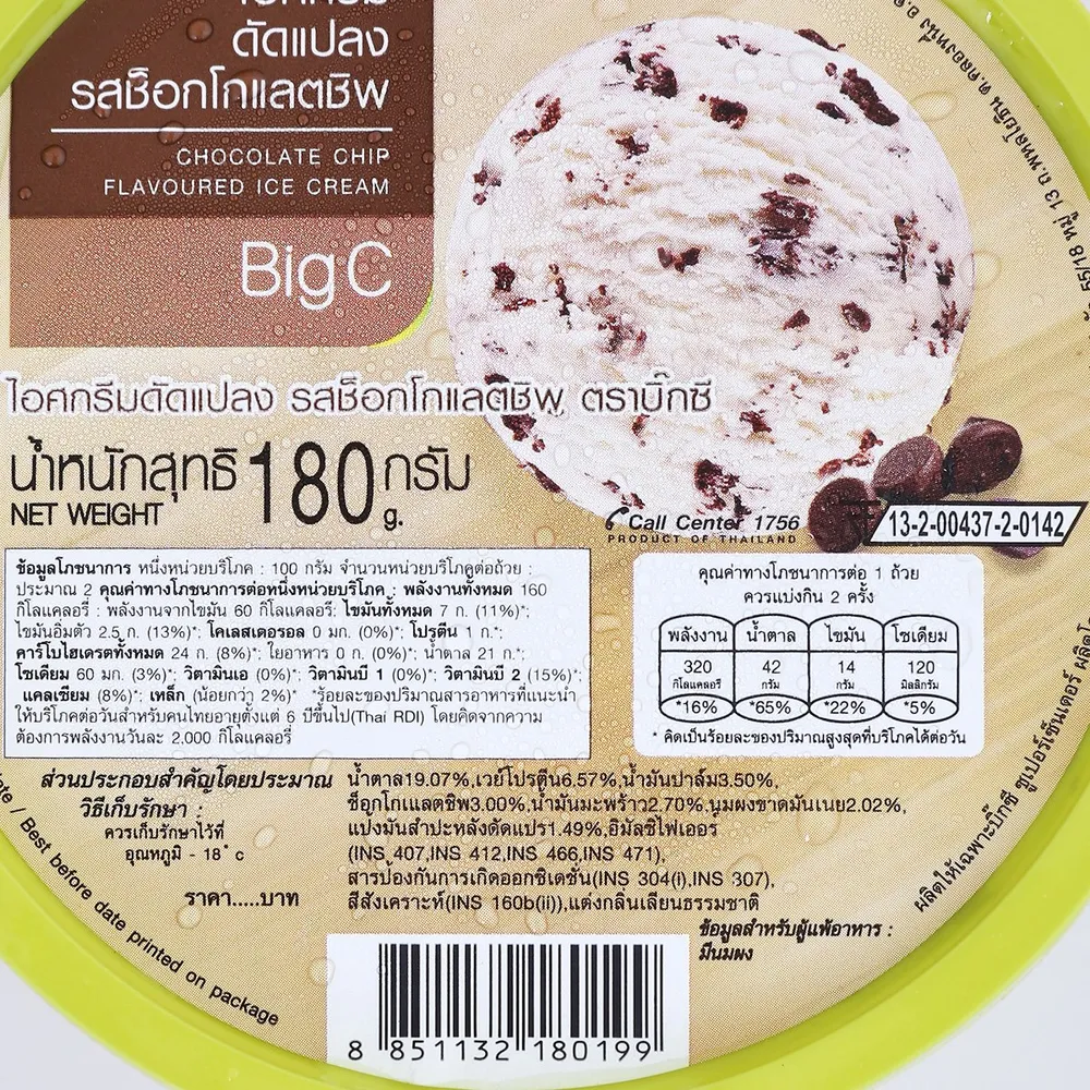 <p>บิ๊กซี ไอศกรีมดัดแปลง รสช็อกโกแลตชิพ 180 ก.<br />