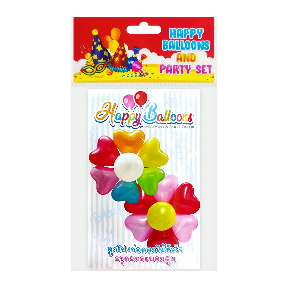 เอ็มทีอาร์ กรุ๊ป ลูกโป่งช่อดอกไม้หัวใจ 2 ชุด และกระบอกสูบลม คละสี