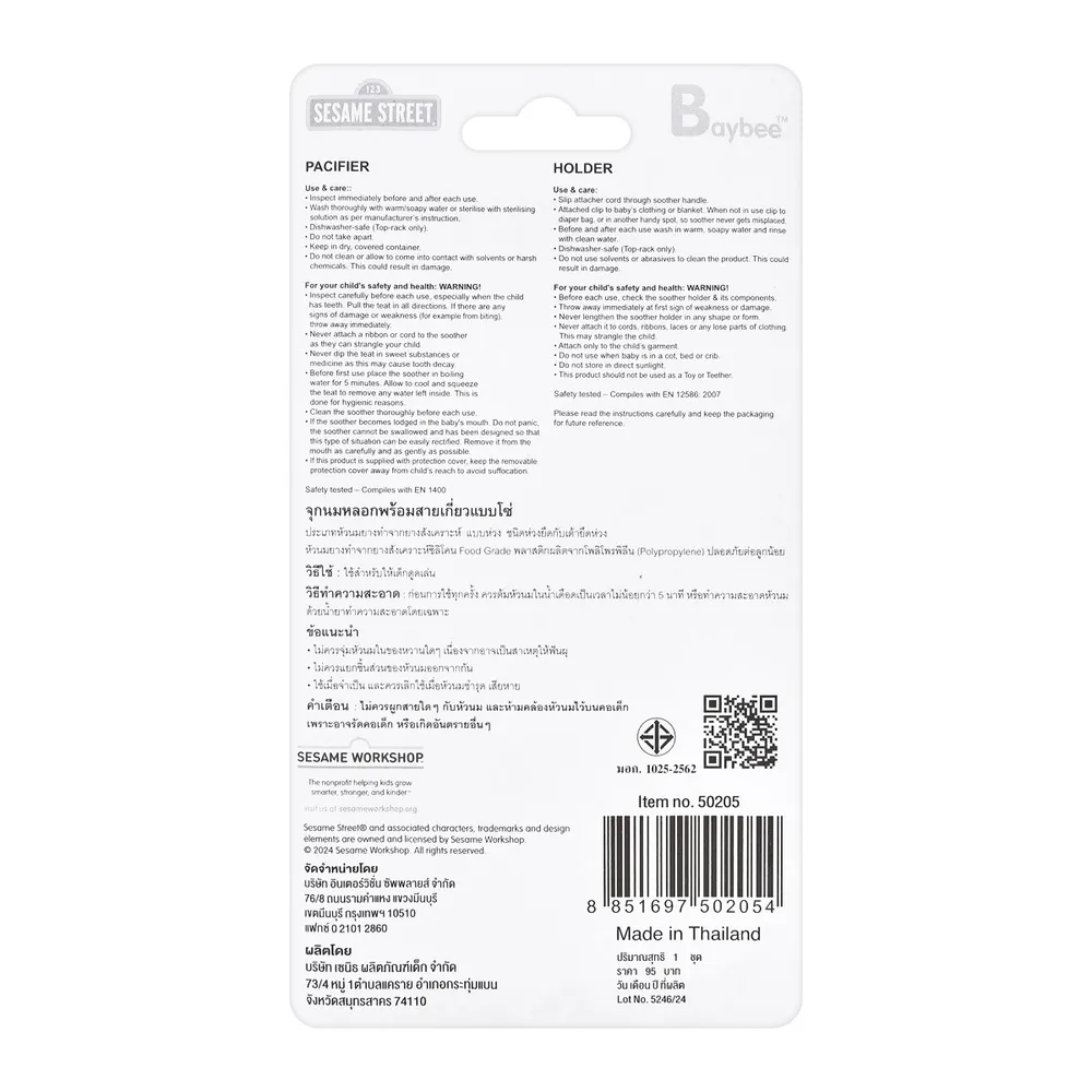 เซซามี่ สตรีท จุกนมหลอกพร้อมสายเกี่ยวแบบโซ่ รุ่น 50205 คละแบบ