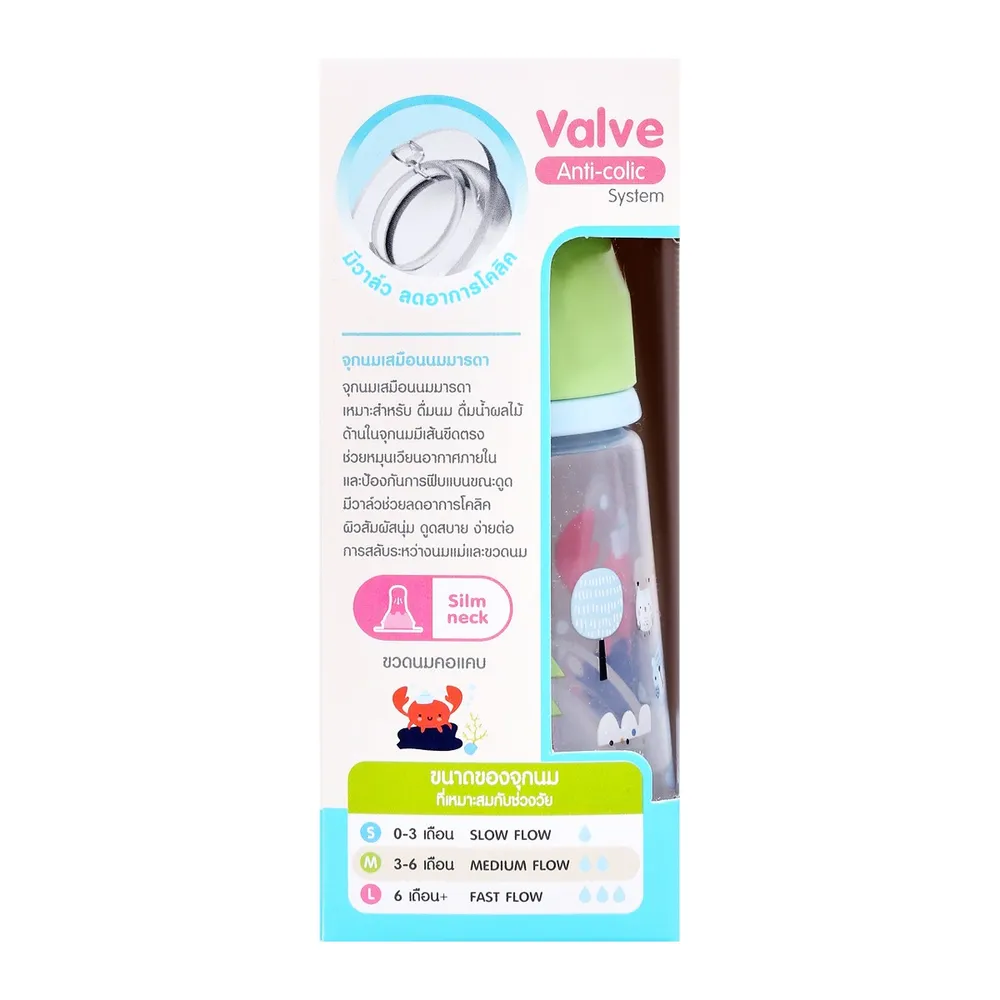 - Anti-colic พร้อมวาล์วระบายอากาษช่วยให้น้ำนมไหลอย่างสม่ำเสมอ ลดการเกิดโคลิคจากการดูดอากาศเข้าห้อง ทั้งยังช่วยป้องกันการฟีบแบนของจุก<br />