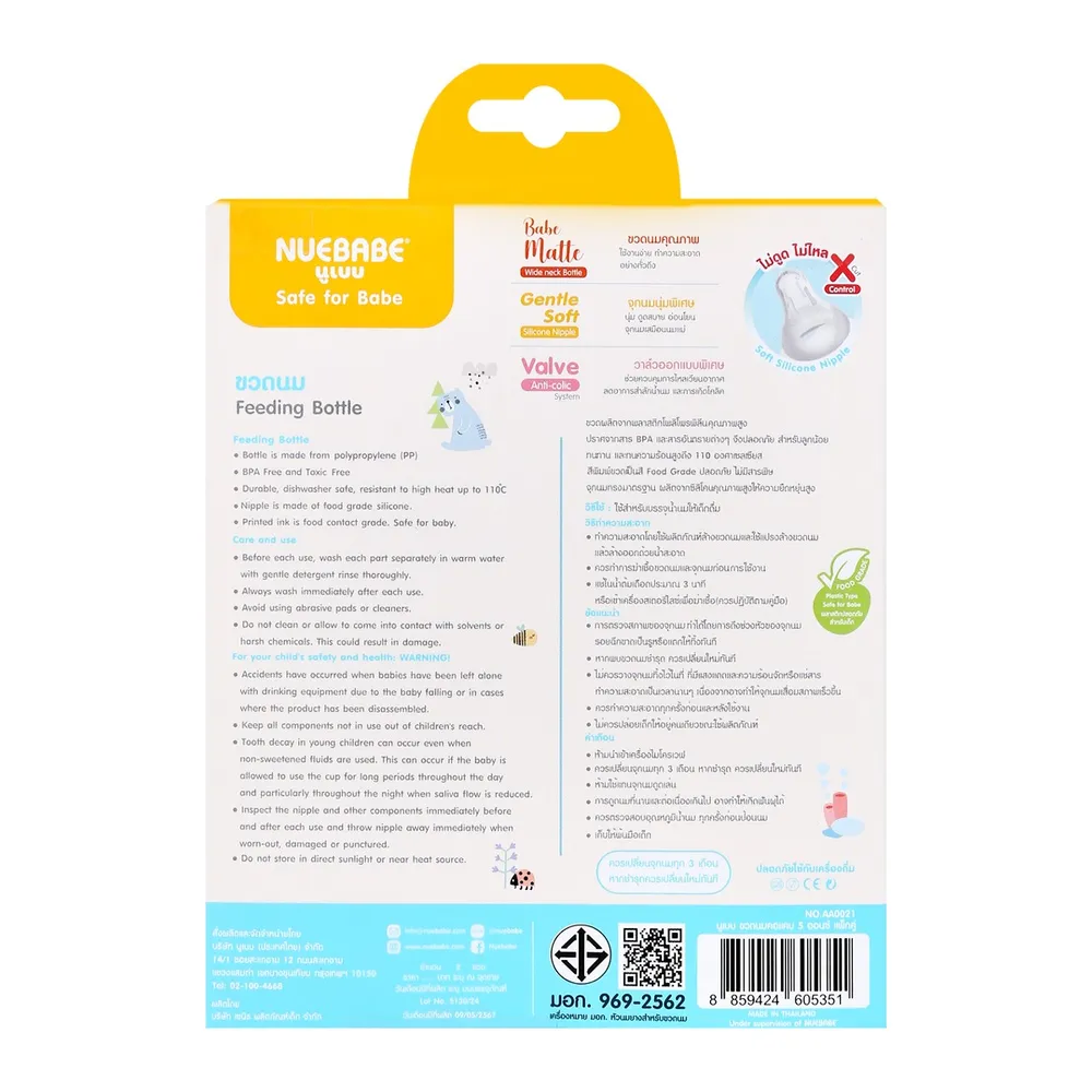 นูเบบ ขวดนมคอแคบ รุ่น AA0021 ขนาด 150 มล. แพ็ค 2