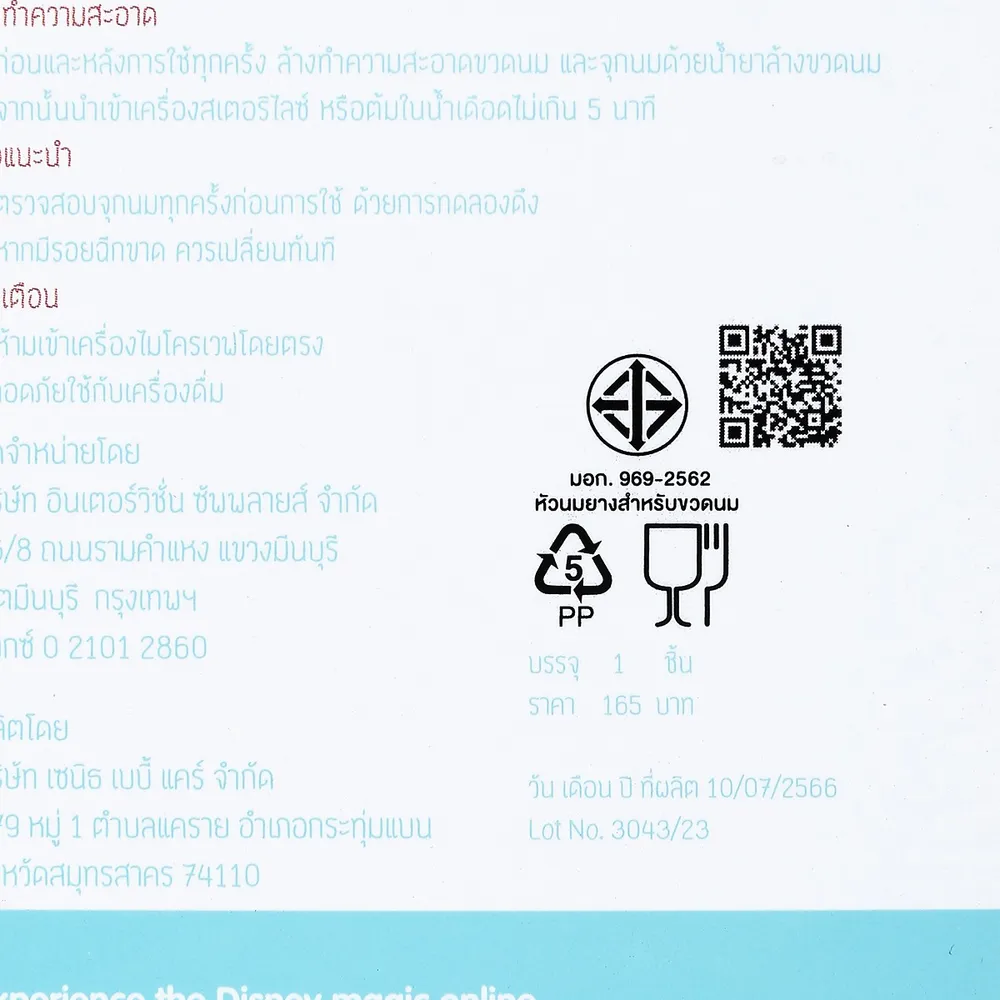 <p>ดิสนีย์ เบบี้ ขวดนมปากกว้าง รุ่น 80147<br /> <br /> ดิสนีย์ เบบี้ ได้พัฒนาและสร้างสรรค์ผลิตภัณฑ์สำหรับทารกที่หลากหลาย เพื่อความสะดวกสบายและคุณภาพชีวิตที่ดีขึ้นของทารก คุณแม่และทุกคนครอบครัว<br /> <br /> - Fast Flow 6m+<br /> - เนื้อขวดผลิตจากวัสดุคุณภาพสูง (PP)<br /> - ปราศจากสาร BPA และสารอันตรายต่าง ๆ<br /> - ทนทานและทนความร้อนสูงถึง 100&deg;C<br /> - จุกนมทรงมาตรฐาน ผลิตจากซิลิโคนคุณภาพสูงให้ความยืดหยุ่นสูง และมีวาล์ว ช่วยให้ระบบการหมุนเวียนอากาศ ภายในขวดนมได้ดี ลดการจุกเสียด สำลัก ท้องอืดและโคลิค<br /> - สีพิมพ์ขวดเป็นสี Food Grade ปลอดภัย ไม่มีสารพิษ<br /> - ควรเลือกใช้ขนาดจุกนมให้เหมาะสมกับช่วงวัยของลูกน้อย<br /> <br /> <strong>เลขที่ มอก.</strong><br /> 969-2562<br /> <br /><span style="color: #ff0000;">*บริษัทฯ ขอสงวนสิทธิ์ในการปรับเปลี่ยนราคาจำหน่ายและโปรโมชั่น รวมถึงแพ็คเกจและปริมาณสินค้าจากผู้ผลิตได้ตามความเหมาะสม โดยไม่จำเป็นต้องแจ้งให้ทราบล่วงหน้า</span><br /><br />*สีของสินค้าอาจมีความแตกต่าง ขึ้นอยู่กับการตั้งค่าของแต่ละหน้าจอ และภาพประกอบใช้เพื่อการโฆษณาเท่านั้น</p>