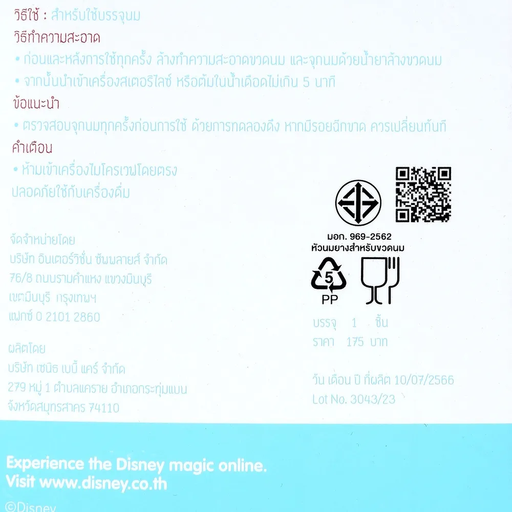 <p>ดิสนีย์ เบบี้ ขวดนมปากกว้างพร้อมแขนจับ รุ่น 80146<br /> <br /> ดิสนีย์ เบบี้ ได้พัฒนาและสร้างสรรค์ผลิตภัณฑ์สำหรับทารกที่หลากหลาย เพื่อความสะดวกสบายและคุณภาพชีวิตที่ดีขึ้นของทารก คุณแม่และทุกคนครอบครัว<br /> <br /> - Fast Flow 6m+<br /> - เนื้อขวดผลิตจากวัสดุคุณภาพสูง (PP)<br /> - ปราศจากสาร BPA และสารอันตรายต่าง ๆ<br /> - ทนทานและทนความร้อนสูงถึง 100&deg;C<br /> - จุกนมทรงมาตรฐาน ผลิตจากซิลิโคนคุณภาพสูงให้ความยืดหยุ่นสูง และมีวาล์ว ช่วยให้ระบบการหมุนเวียนอากาศ ภายในขวดนมได้ดี ลดการจุกเสียด สำลัก ท้องอืดและโคลิค<br /> - สีพิมพ์ขวดเป็นสี Food Grade ปลอดภัย ไม่มีสารพิษ<br /> - ควรเลือกใช้ขนาดจุกนมให้เหมาะสมกับช่วงวัยของลูกน้อย<br /> <br /> <strong>เลขที่ มอก.</strong><br /> 969-2562<br /> <br /><span style="color: #ff0000;">*บริษัทฯ ขอสงวนสิทธิ์ในการปรับเปลี่ยนราคาจำหน่ายและโปรโมชั่น รวมถึงแพ็คเกจและปริมาณสินค้าจากผู้ผลิตได้ตามความเหมาะสม โดยไม่จำเป็นต้องแจ้งให้ทราบล่วงหน้า</span><br /><br />*สีของสินค้าอาจมีความแตกต่าง ขึ้นอยู่กับการตั้งค่าของแต่ละหน้าจอ และภาพประกอบใช้เพื่อการโฆษณาเท่านั้น</p>