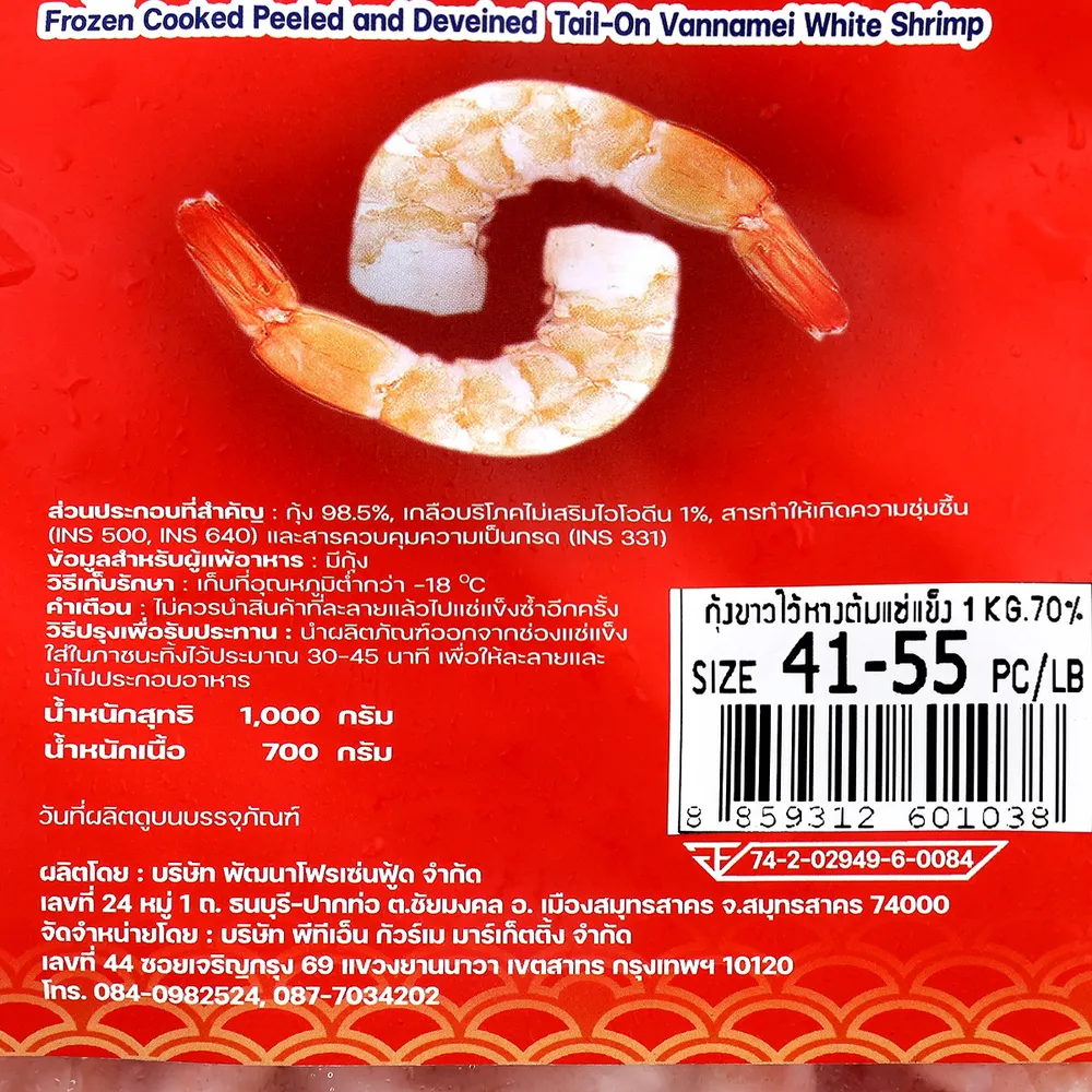 พีทีเอ็น กูร์เมต์ กุ้งขาวไว้หางต้มแช่แข็ง 1000 ก.