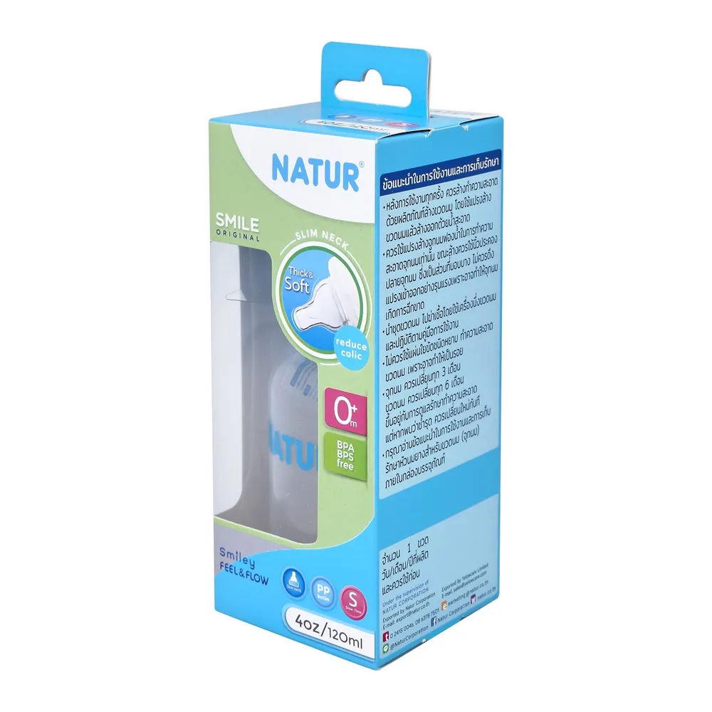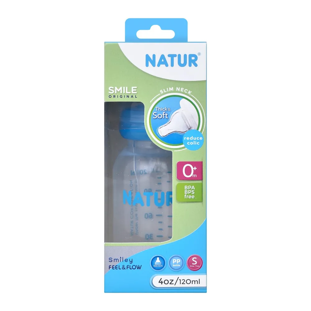 เสิร์ฟน้ำนมมื้ออร่อยให้เด็กน้อยด้วยขวดนม ทรงกลม ขนาด 4 ออนซ์ จากเนเจอร์ ผลิตจากโพลิโพรพิลีน ปลอดภัยจากสารบิสฟีนอล-เอ ทนความร้อนได้ 100 องศาเซลเซียส จุกนม เนเจอร์สไมล์ เป็นยางซิลิโคน หนานุ่มให้สัมผัสที่ใกล้เคียงเต้านมคุณแม่ สำหรับเด็กแรกเกิดเป็นต้นไป<br />