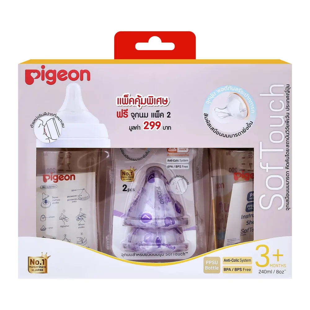 <p>พีเจ้น ขวดนม PPSU รุ่นซอฟท์ทัช เพอร์ริสทัลทิค พลัส ขนาด 240 มล. พร้อมจุกนม ขนาด M แพ็คคู่<br />