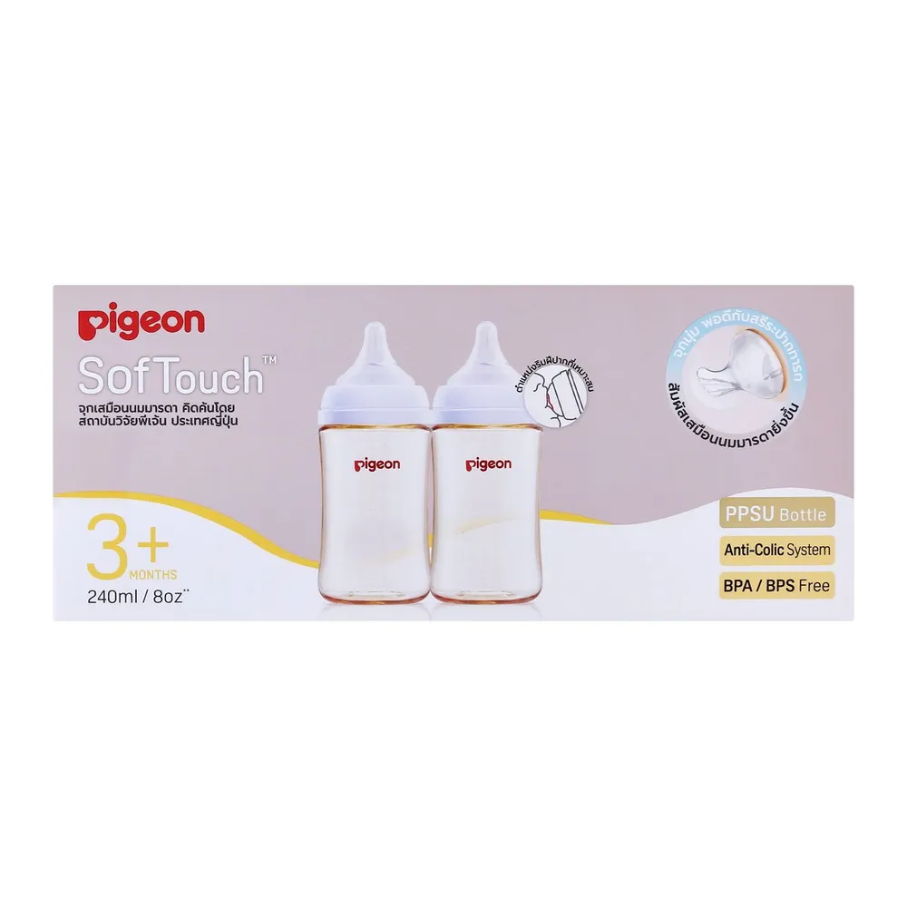 พีเจ้น ขวดนม PPSU รุ่นซอฟท์ทัช เพอร์ริสทัลทิค พลัส ขนาด 240 มล. พร้อมจุกนม ขนาด M แพ็คคู่