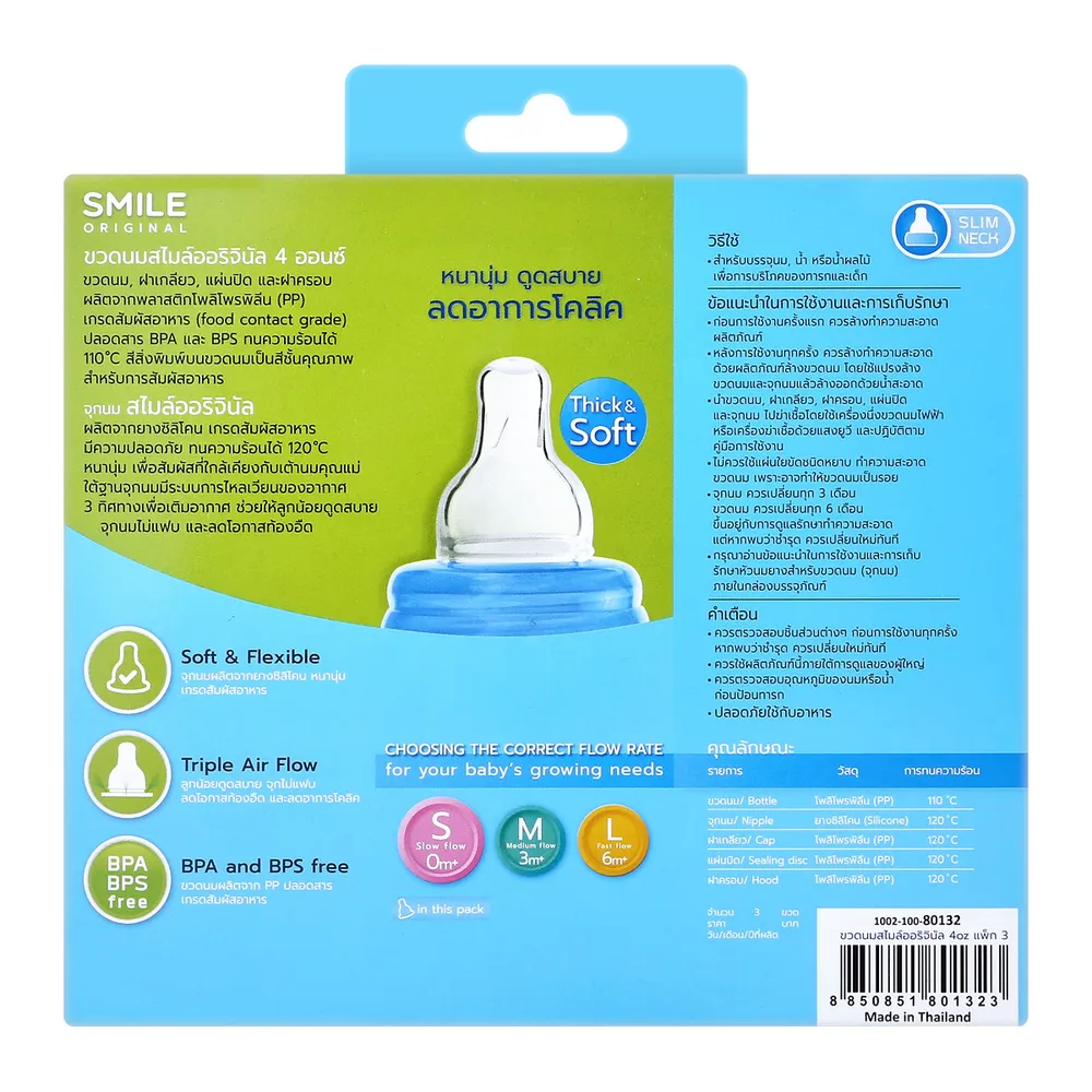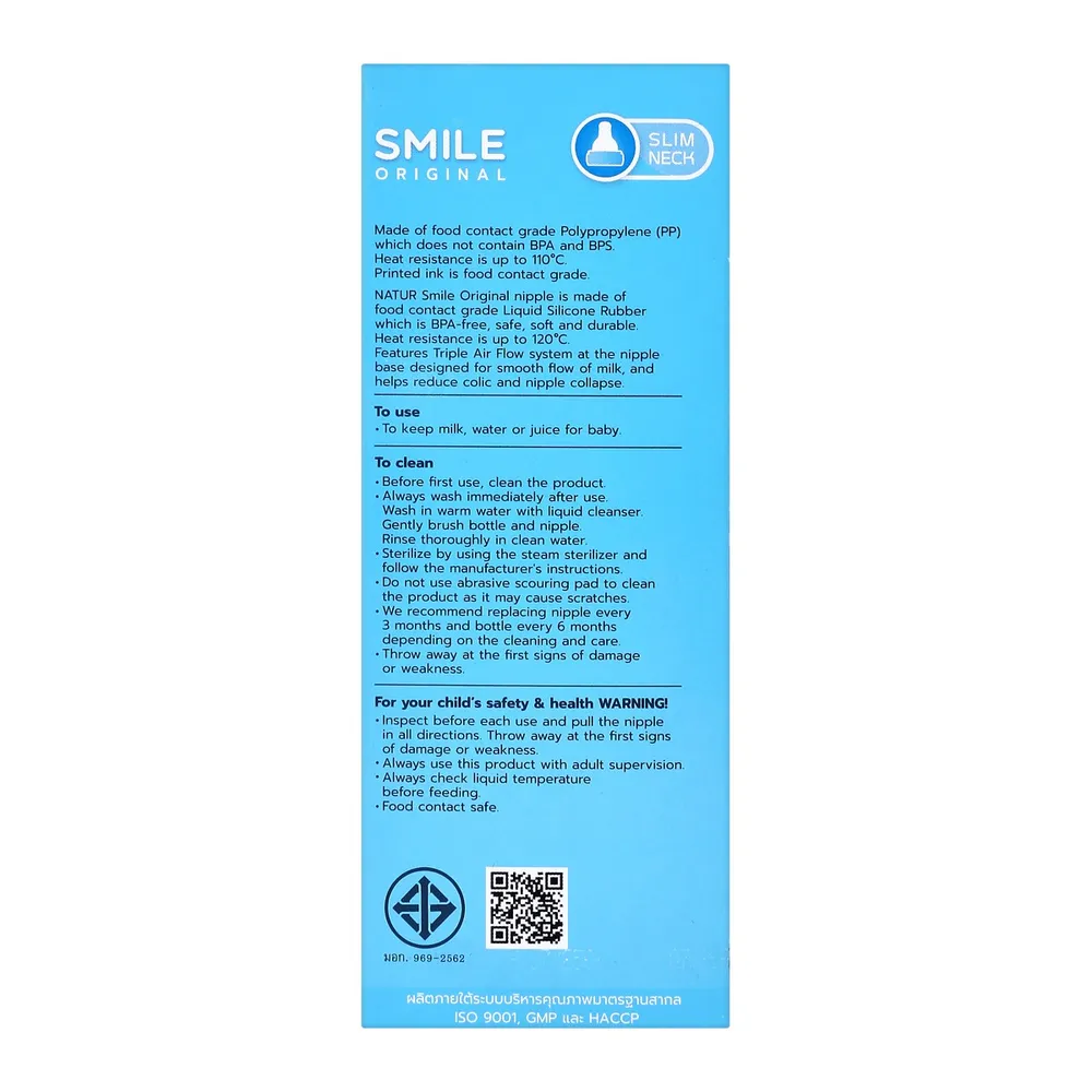 <p>เนเจอร์ ขวดนมทรงกลม 4 ออนซ์ แพ็ค 3<br /> <br /> เนเจอร์ ขวดนมทรงกลม 4 ออนซ์ แพ็ค 3 เป็นข้าวของเครื่องใช้สำหรับลูกน้อย ผลิตภัณฑ์จากเนเจอร์ ผู้ผลิตและจัดจำหน่ายผลิตภัณฑ์สำหรับเด็ก ที่พิถีพิถันและพัฒนาให้ใกล้เคียงกับการให้นมจากอกแม่ มีคุณภาพและความปลอดภัยในระดับมาตรฐานสากล<br /> <br /> - ขวดนม ฝาเกลียว แผ่นปิด เเละฝาครอบ ผลิตจากพลาสติกโพลิโพรพิลีน (PP) ปลอดสาร BPA, BPS<br /> - ทนความร้อนได้ 110 องศาเซลเซียส สามารถนำไปฆ่าเชื้อในเครื่องนึ่งขวดนมได้<br /> - สีสิ่งพิมพ์บนขวดนม เป็นสีคุณภาพสำหรับการสัมผัสอาหาร (food contact grade)<br /> - มาพร้อมกับจุกนมออริจินอล ขนาด S สำหรับเด็กอายุ 0 เดือนขึ้นไป<br /> - จุกนมผลิตจากซิลิโคน มีความปลอดภัย ทนความร้อนได้ 120 องศาเซลเซียส<br /> - จุกนมหนานุ่ม เพื่อสัมผัสที่ใกล้เคียงกับเต้านมคุณแม่<br /> - ใต้ฐานจุกนมมีระบบการไหลเวียนของอากาศ 3 ทิศทางเพื่อเติมอากาศ ดูดสบาย จุกนมไม่เเฟบ และลดโอกาสท้องอืด<br /> <br /><span style="color: #ff0000;">*บริษัทฯ ขอสงวนสิทธิ์ในการปรับเปลี่ยนราคาจำหน่ายและโปรโมชั่น รวมถึงแพ็คเกจและปริมาณสินค้าจากผู้ผลิตได้ตามความเหมาะสม โดยไม่จำเป็นต้องแจ้งให้ทราบล่วงหน้า</span><br /><br /> *ภาพประกอบใช้เพื่อการโฆษณาเท่านั้น</p>