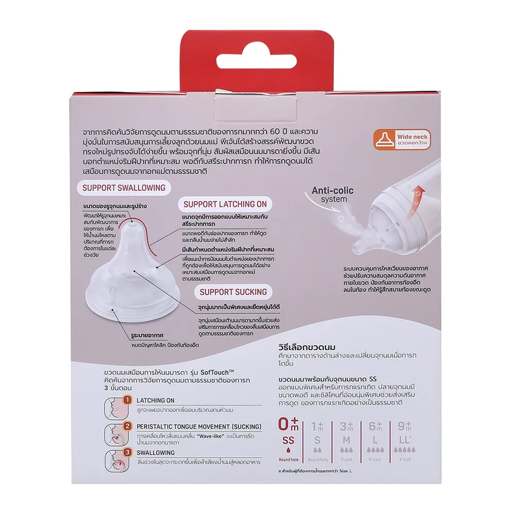 - มาพร้อมกับจุกนมซอฟท์ทัช ขนาด SS สำหรับเด็กอายุ 0 เดือนขึ้นไป<br />