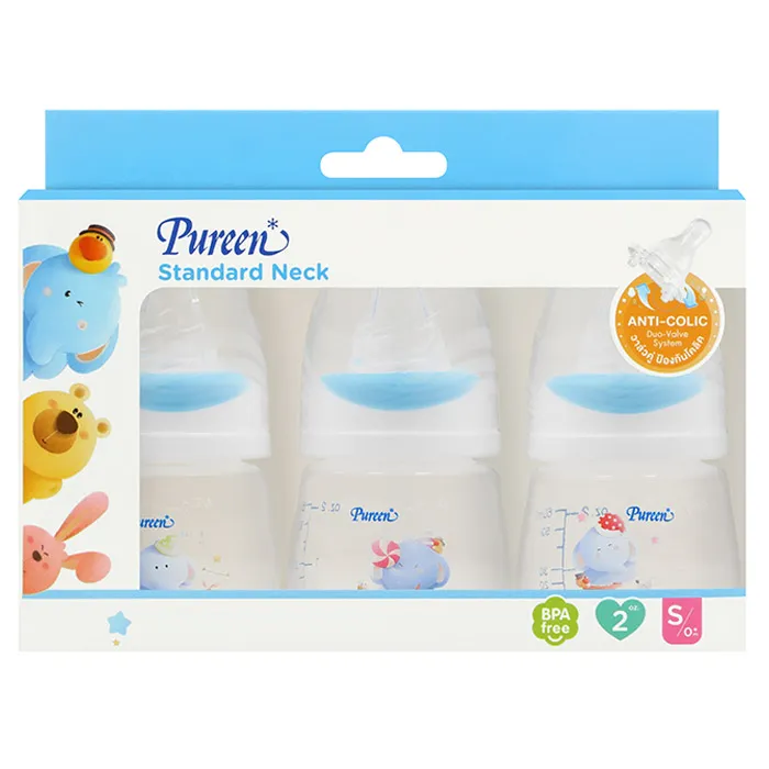 เพียวรีน ขวดนม พร้อมลายช้าง สีฟ้า 2 ออนซ์ แพ็ค 3