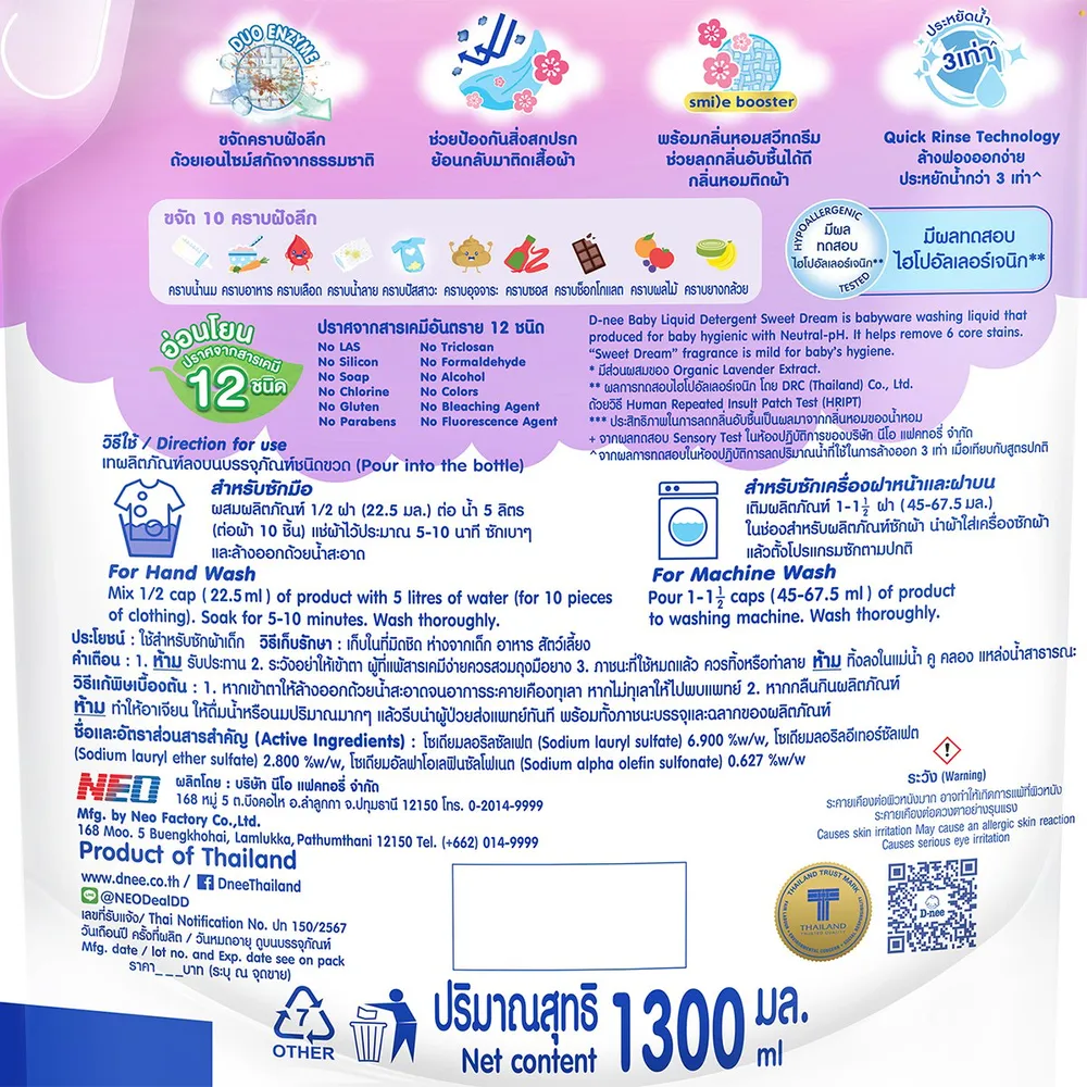 ดีนี่ สวีท ดรีม น้ำยาซักผ้าเด็ก 1300 มล.