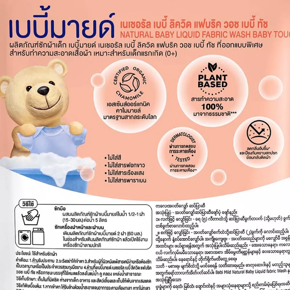 ผลิตภัณฑ์ซักผ้าที่มีความอ่อนโยนต่อผ้าและผิวสูงอย่าง เบบี้มายด์ ผลิตภัณฑ์ซักผ้าเด็ก สูตรผสมออร์แกนิคคาโมมายล์ ผลิตภัณฑ์ซักผ้าคุณภาพดีเยี่ยมที่ผ่านการทดสอบโดยผู้เชี่ยวชาญว่าไม่ก่อให้เกิดการระคายเคืองต่อผิว สามารถใช้ได้ทั้งครอบครัว<br />