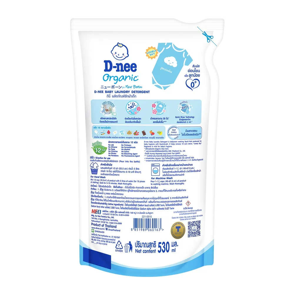 ซักเสื้อเด็ก ๆ ได้สะอาด ด้วย ดีนี่ นิวบอร์น ผลิตภัณฑ์ซักผ้าเด็ก กลิ่นไลฟ์ลี่สกาย น้ำยาซักผ้าคุณภาพเยี่ยมจากแบรนด์ ดีนี่ ซึ่งผ่านการทดสอบภายใต้การควบคุมของแพทย์ผิวหนังว่าปลอดภัยต่อผิวของเด็ก ๆ<br />