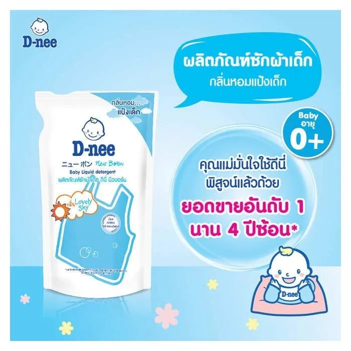 <p>ดีนี่ นิวบอร์น ผลิตภัณฑ์ซักผ้าเด็ก กลิ่นไลฟ์ลี่สกาย แบบถุงเติม สีฟ้า<br />