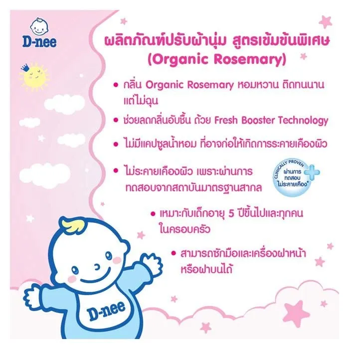 ดีนี่ ผลิตภัณฑ์ปรับผ้านุ่ม สูตรเข้มข้น กลิ่นออร์แกนิค โรสแมรี่ 450 มล.