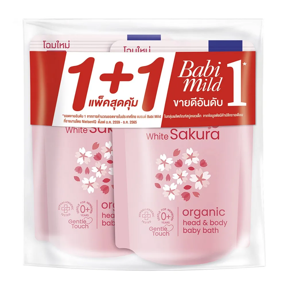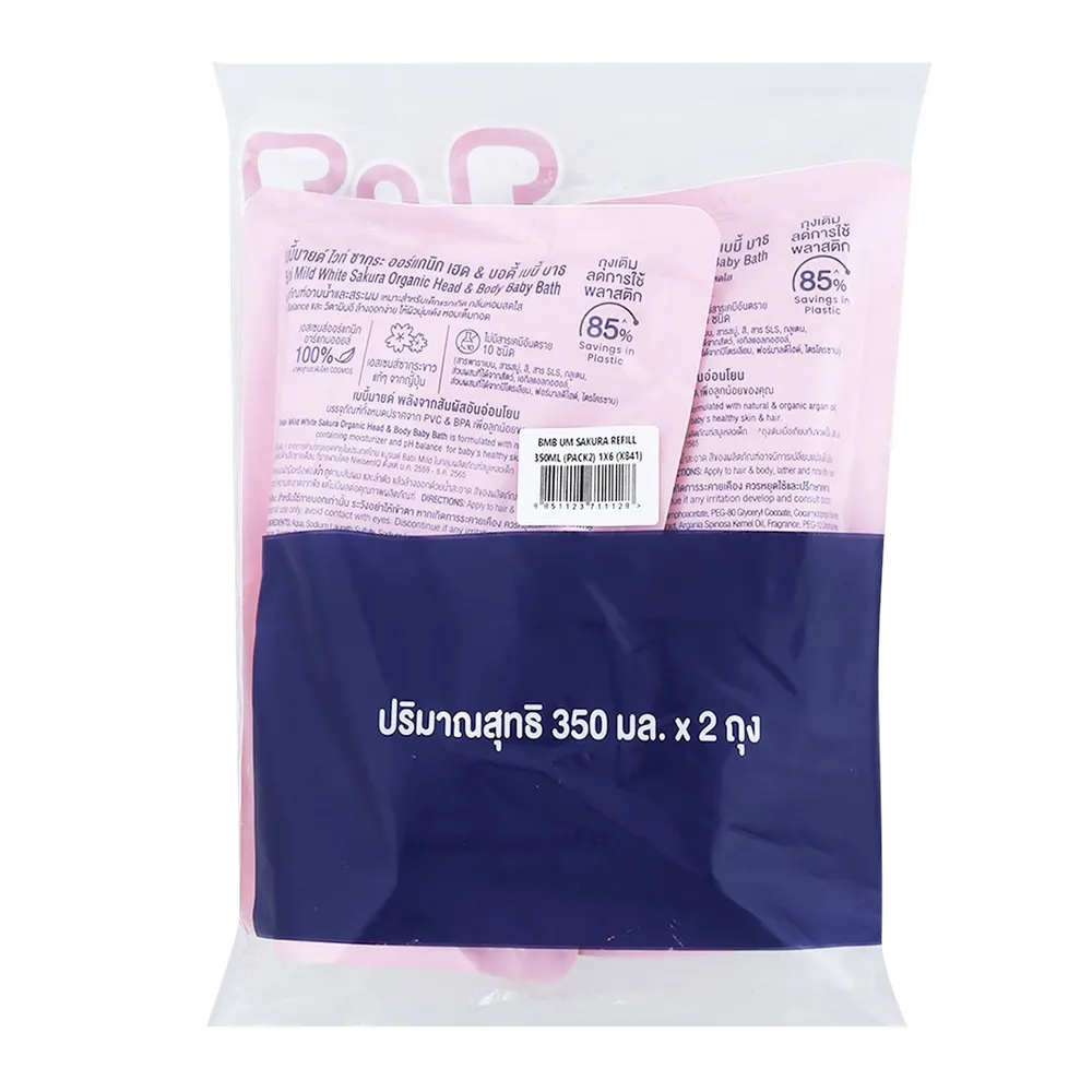 เบบี้มายด์ สบู่เหลว อัลตร้ามายด์ ไวท์ ซากุระ เฮด แอนด์ บอดี้ เบบี้ บาธ แบบถุงเติม 350 มล. แพ็ค 2