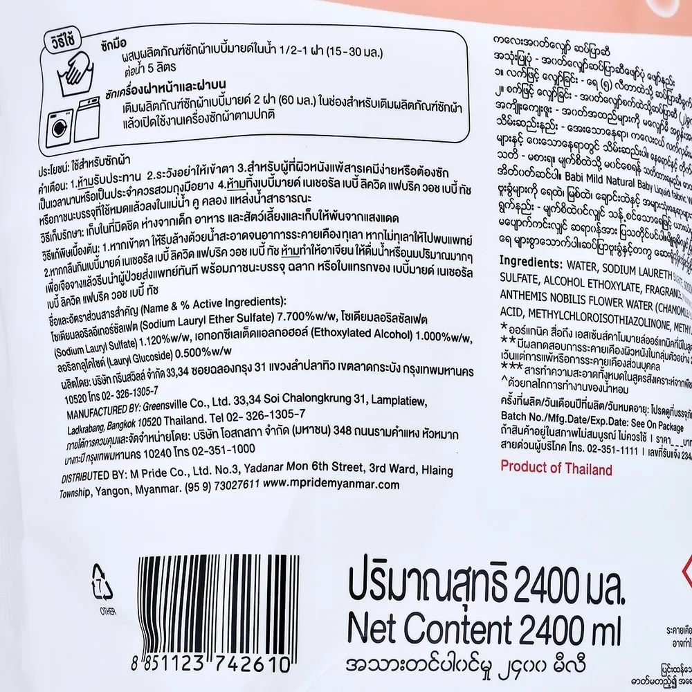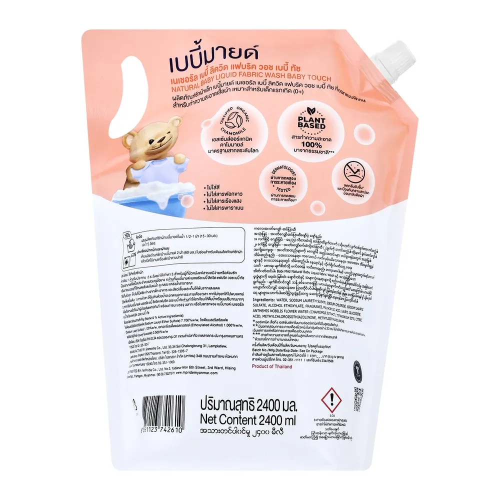 เบบี้มายด์ ผลิตภัณฑ์ซักผ้าเด็กผสมปรับผ้านุ่ม กลิ่นเบบี้ทัช ชนิดเติม 2400 มล.