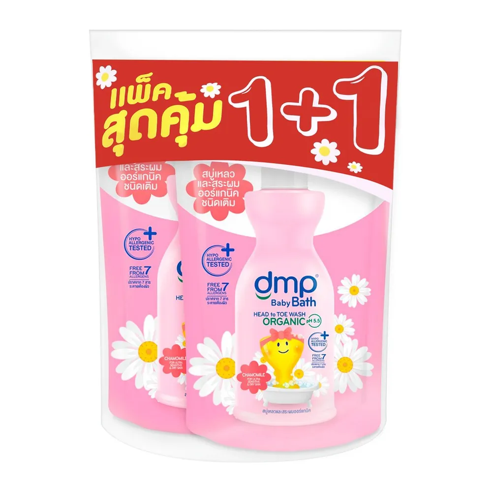 ดีเอ็มพี สบู่อาบน้ำและสระผมออร์แกนิค สำหรับผิวบอบบางแพ้ง่าย รีฟีล 350 มล. แพ็ค 1+1