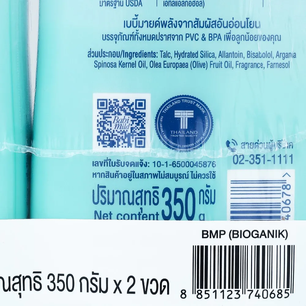 เบบี้มายด์ อัลตร้ามายด์ แป้งเด็ก สูตรไบโอแกนิก 350 ก. แพ็คคู่