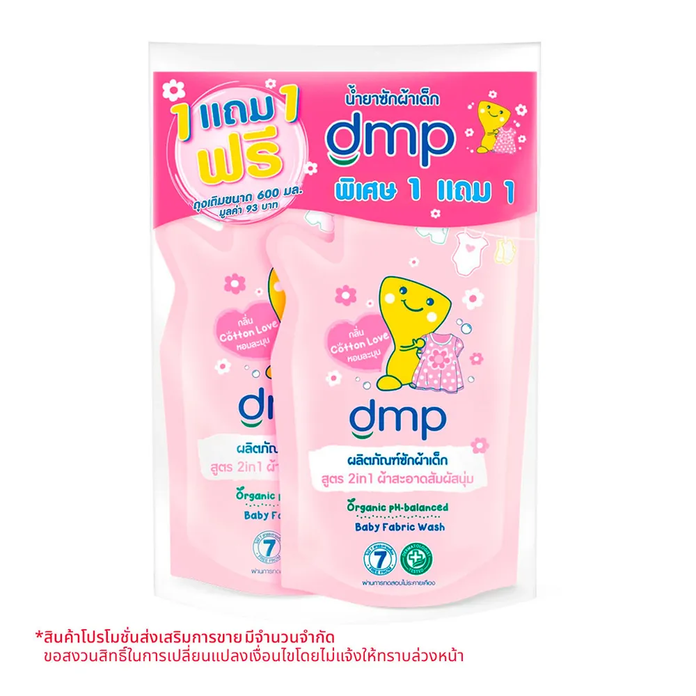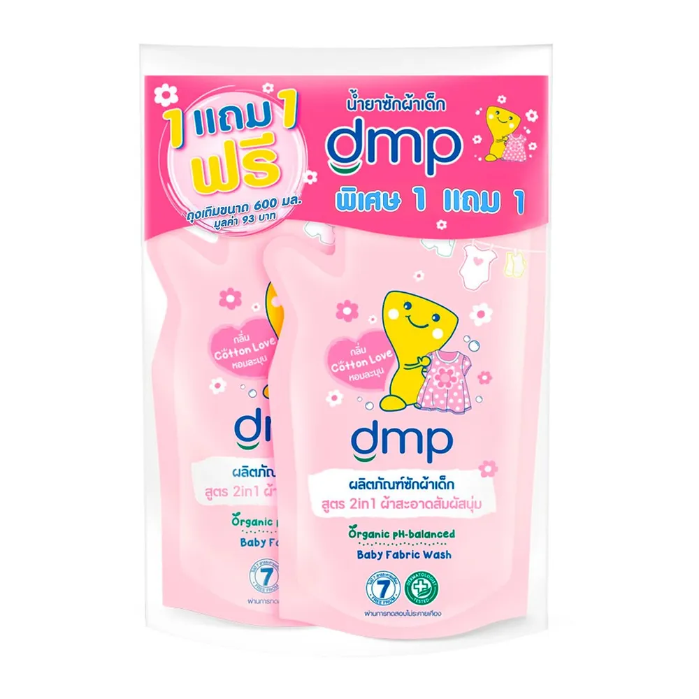 <p>ดีเอ็มพี น้ำยาซักผ้าเด็ก สูตร 2อิน1 กลิ่นคอตตอนเลิฟ ถุงเติม 600 มล.<br />