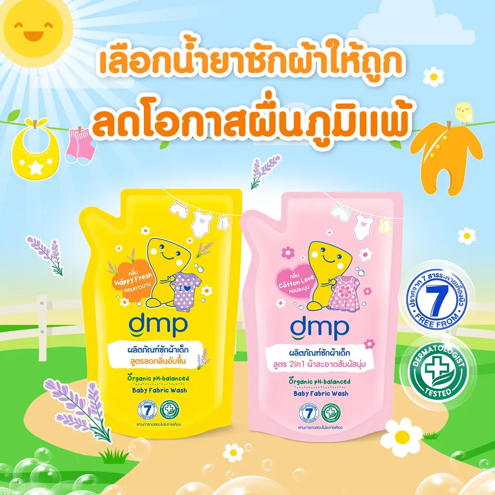 ดีเอ็มพี น้ำยาซักผ้าเด็ก สูตร 2อิน1 กลิ่นคอตตอนเลิฟ ผลิตภัณฑ์ซักผ้าเด็ก ชนิดถุงเติม ผ้าสะอาดและนุ่มฟู​ ออร์แกนิค พีเอช บาลานซ์ ผ่านการทดสอบว่าไม่ระคายเคืองต่อผิวของลูกน้อย<br />