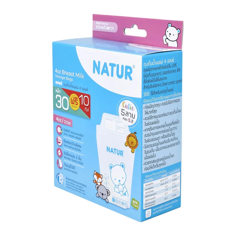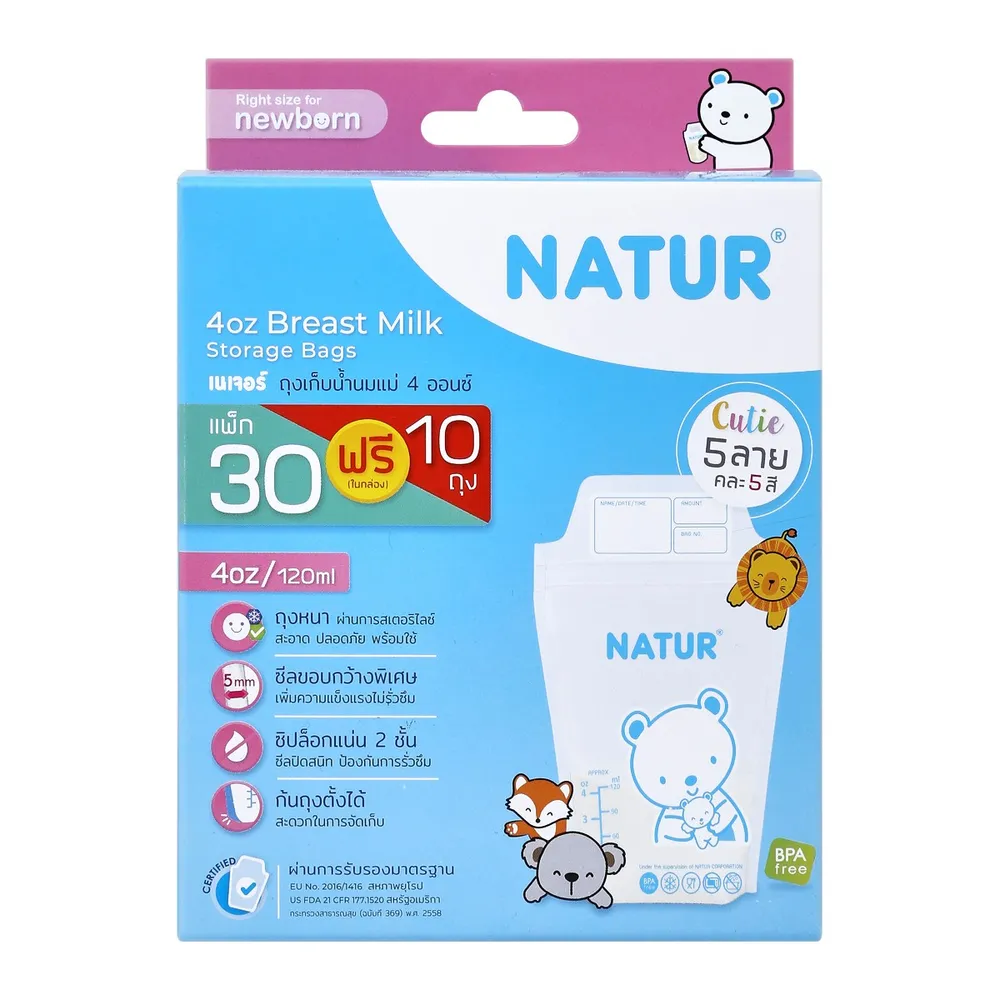 เนเจอร์ ถุงเก็บน้ำนมแม่ 4 ออนซ์ แพ็ค 30+10 ถุง