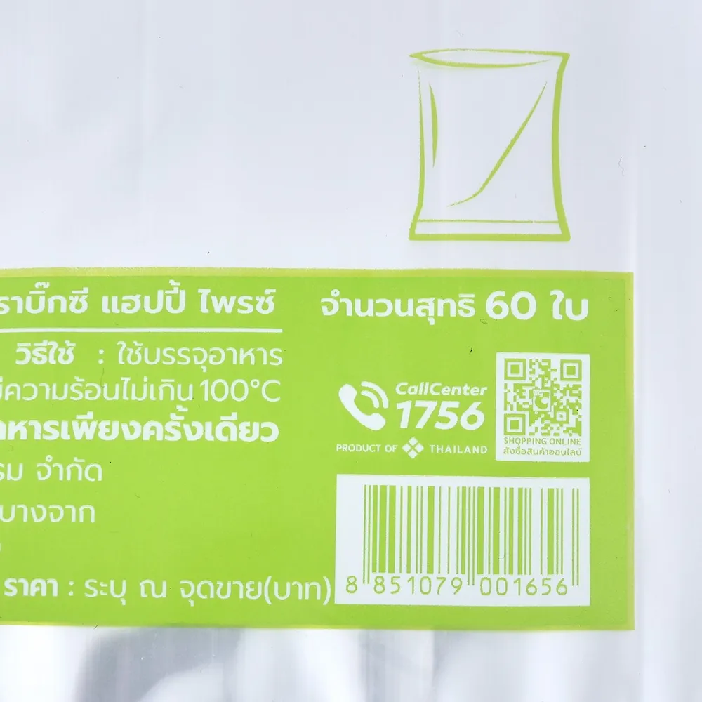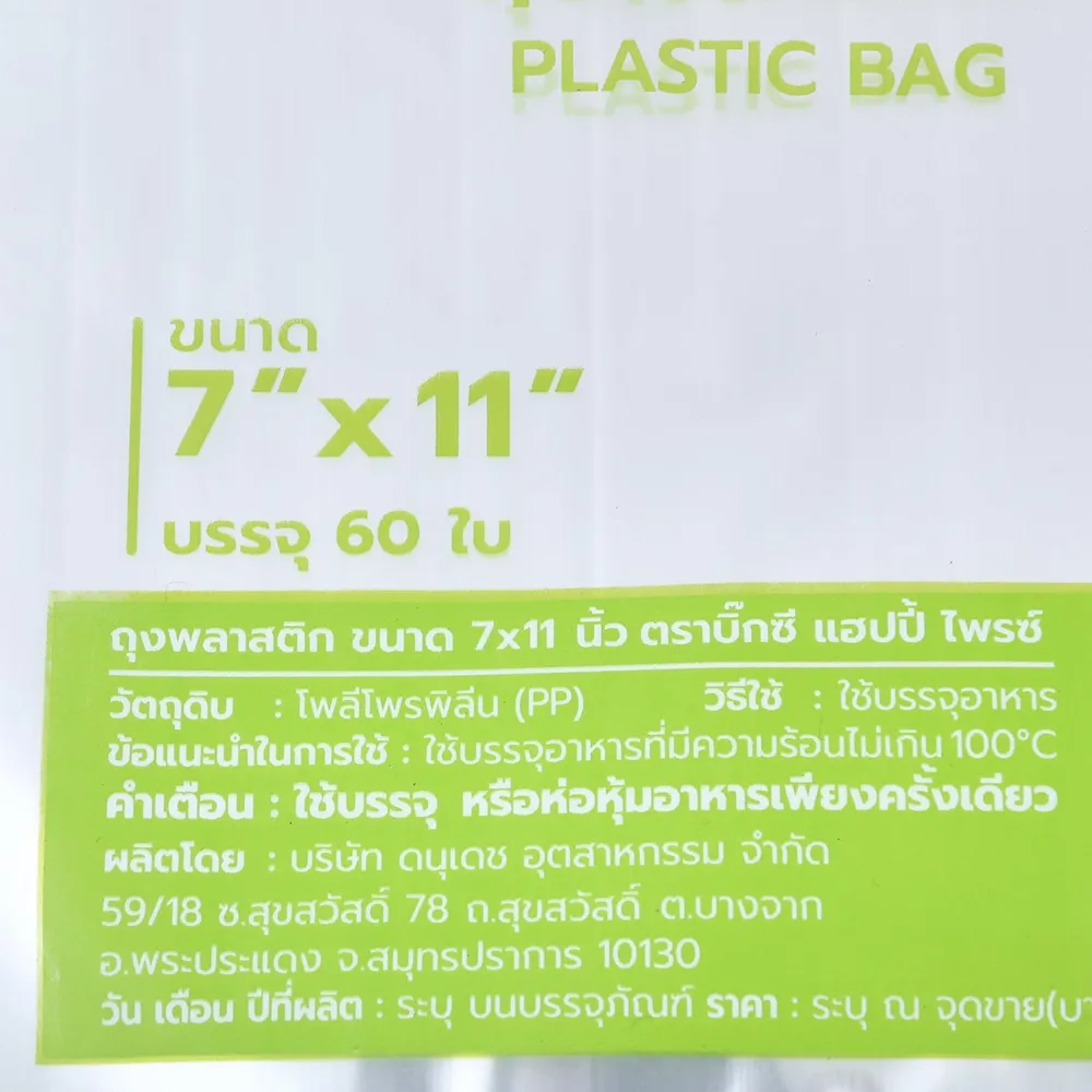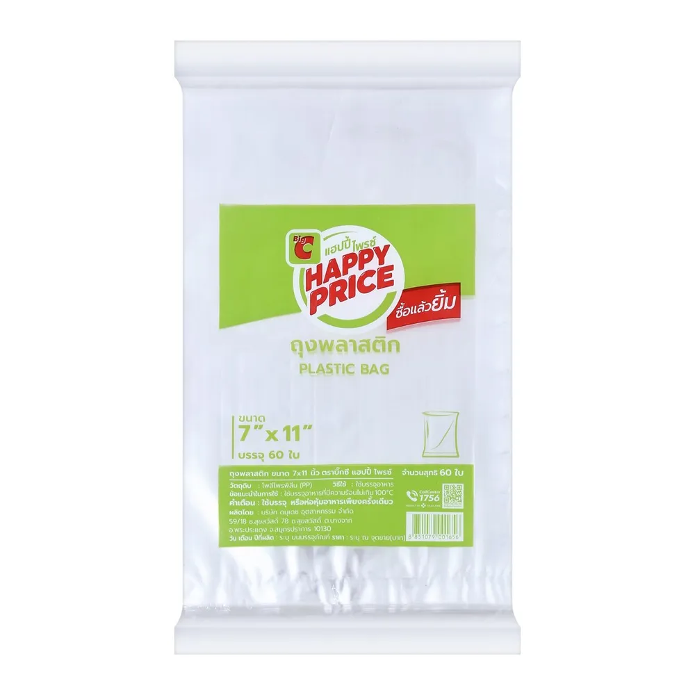 แฮปปี้บาท ถุงพลาสติกบรรจุอาหาร ขนาด 7X11 นิ้ว จำนวน 60 ใบ