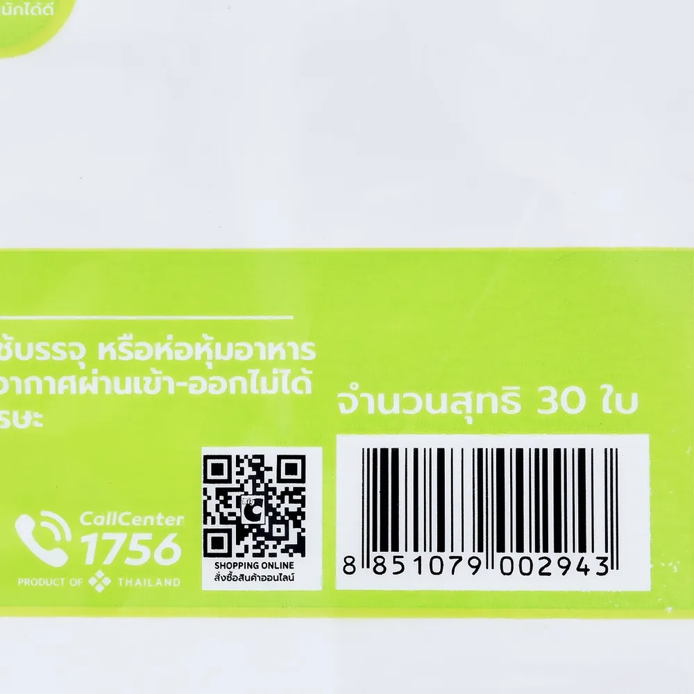 - ถุงพลาสติกหูหิ้ว 12X20 แพ็ค 30 ใบ<br />