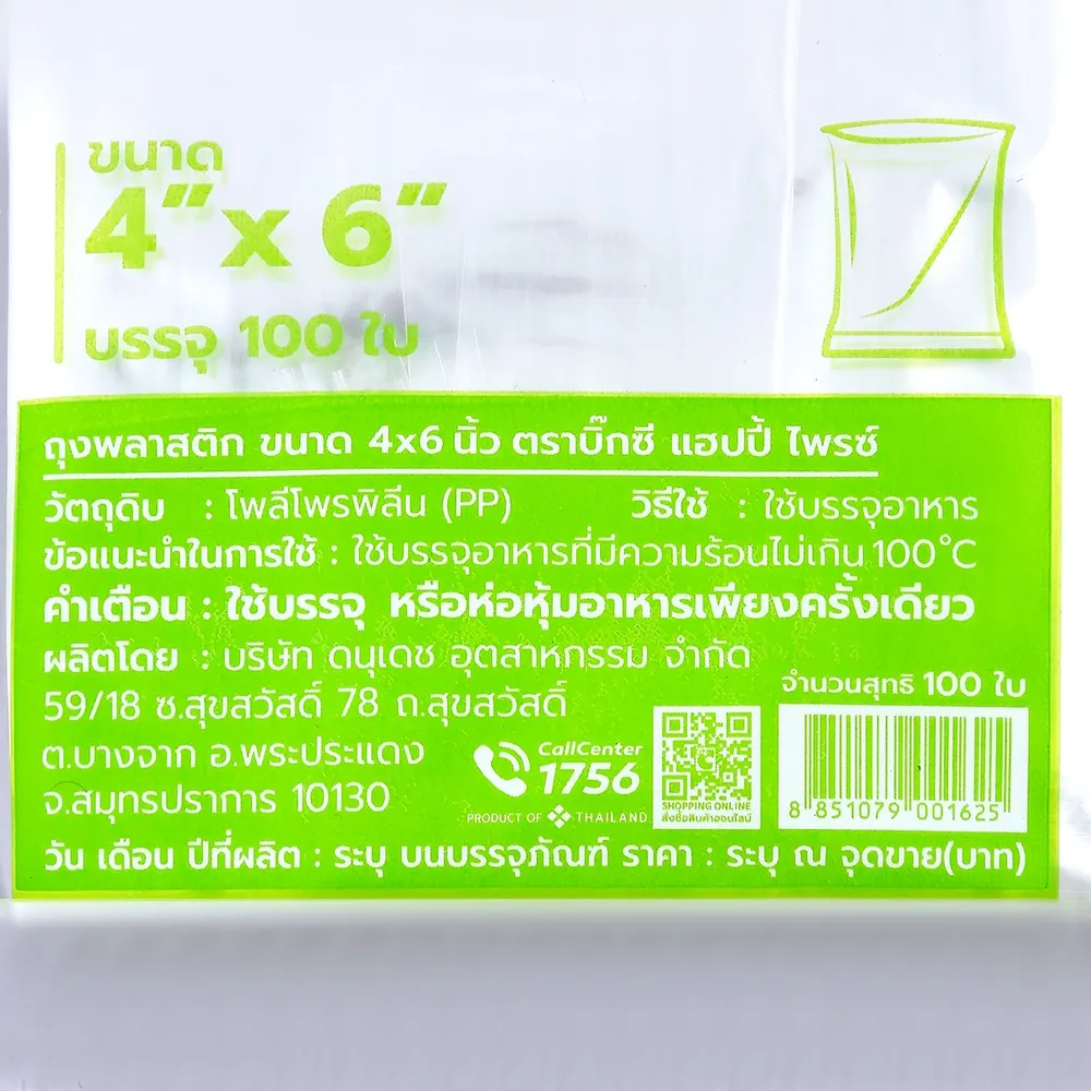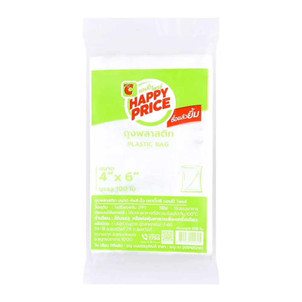 แฮปปี้บาท ถุงพลาสติก ขนาด 4 x 6 นิ้ว 100 ใบ